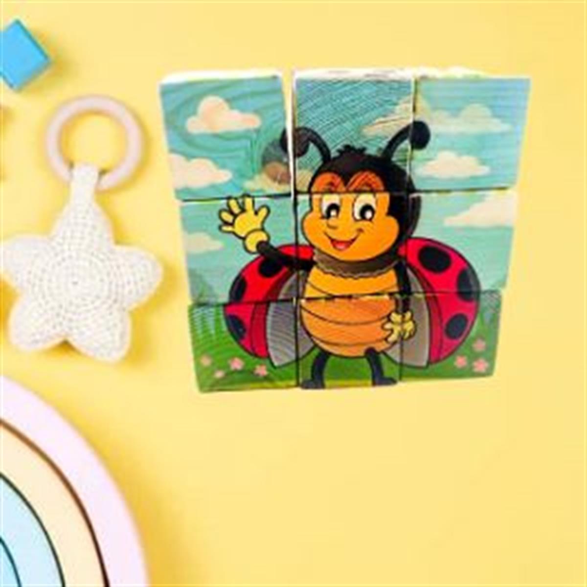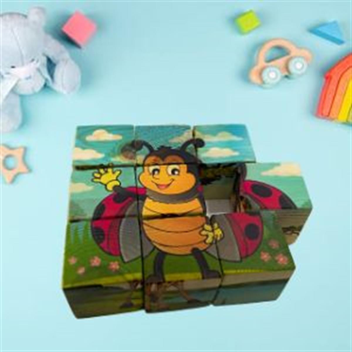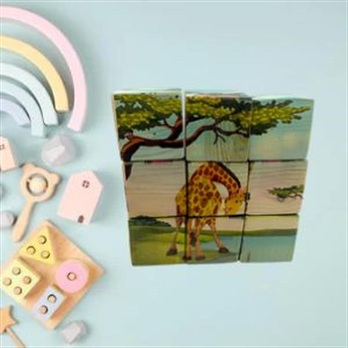 Ahşap 9 Parçalı Küp Puzzle 6 Farklı Desen Eşleştirme