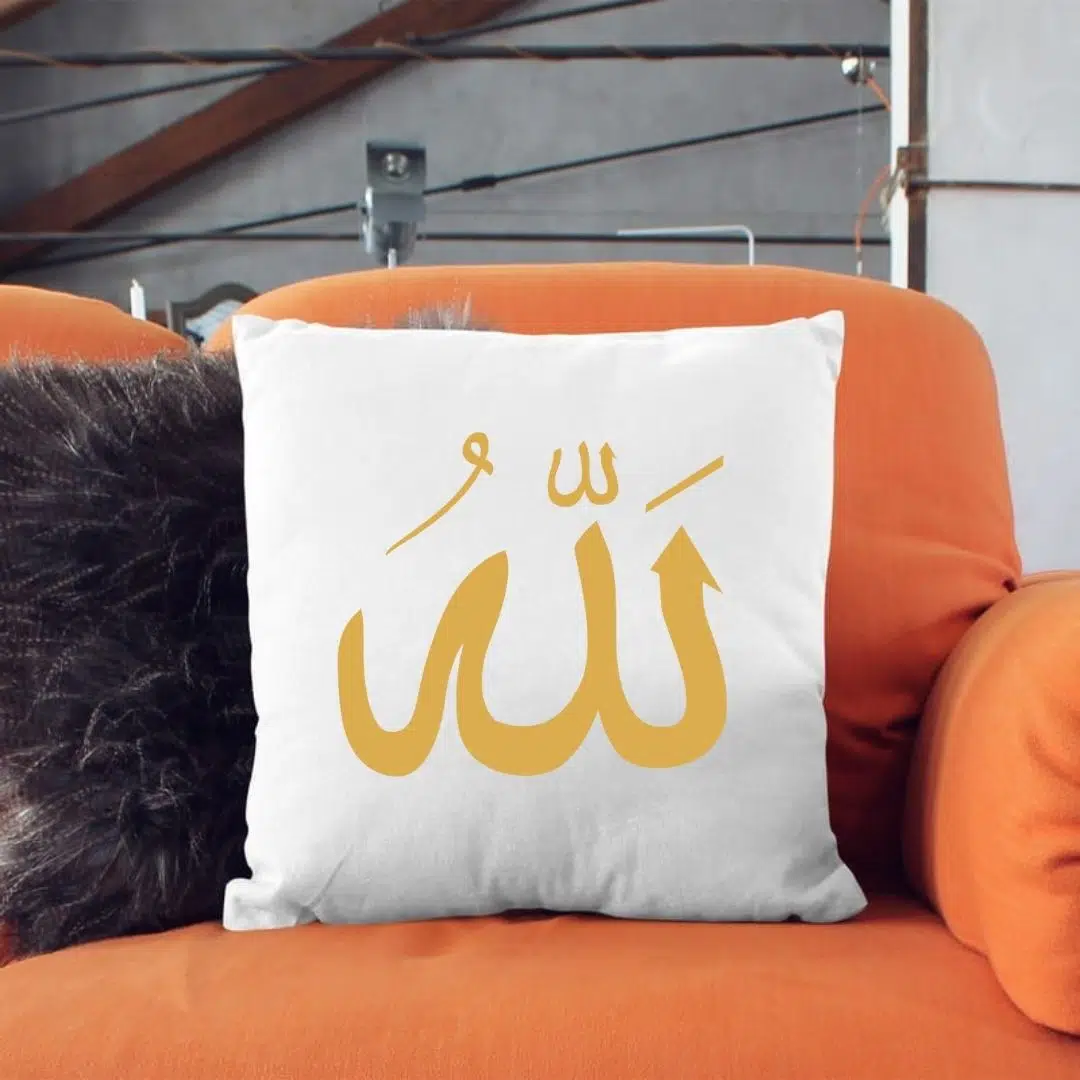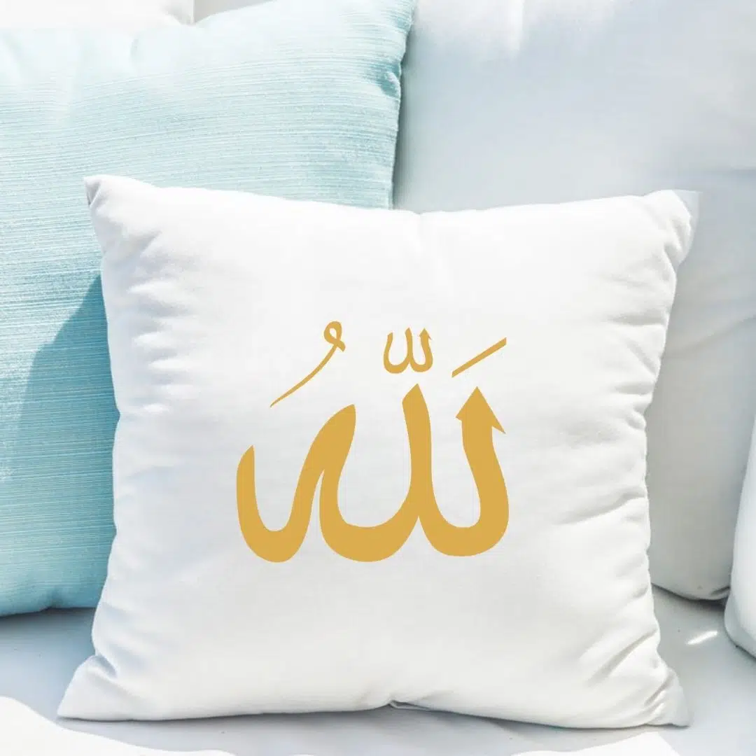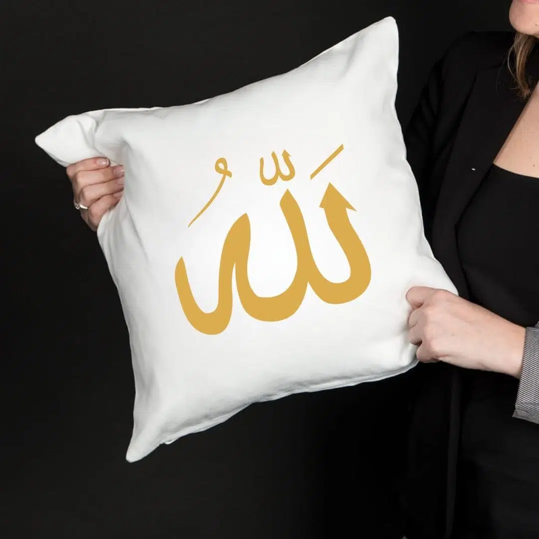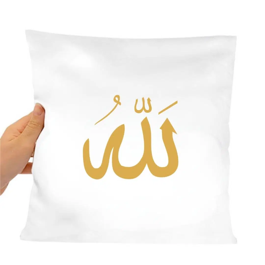 Allah Yazılı Kaligrafi Desenli Dekoratif Yastık Kılıfı – İslami Tasarım, İçi Boş