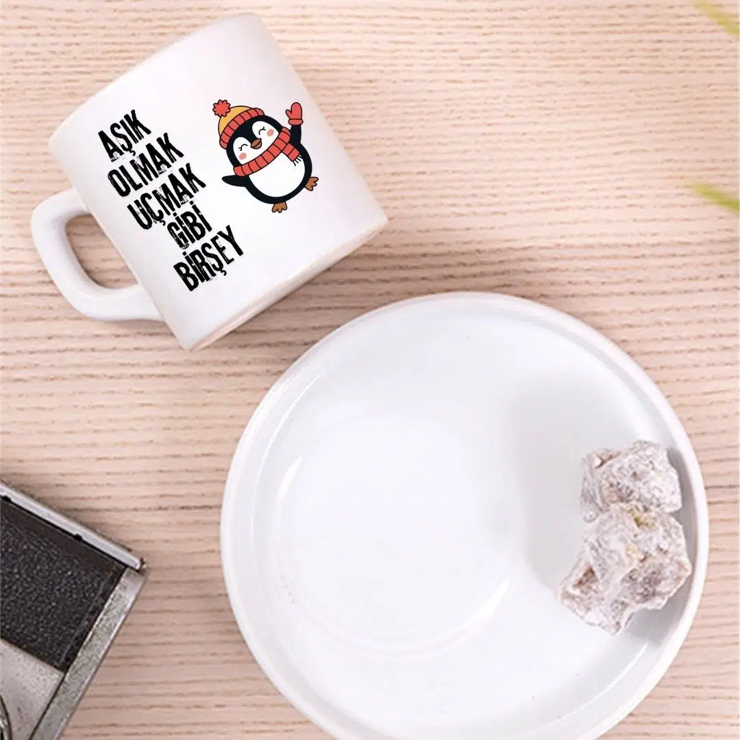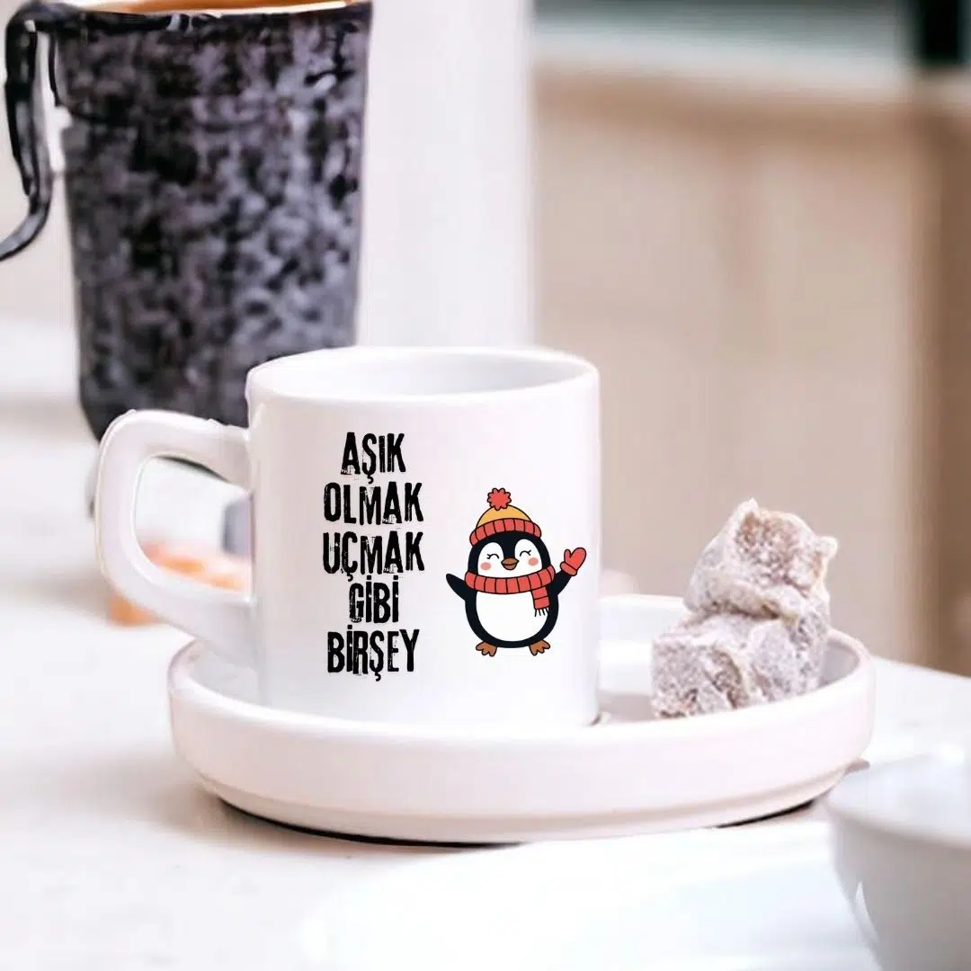 “Aşık Olmak Uçmak Gibi Bir Şey Tasarımlı Türk Kahve Fincanı – Hediyelik Tekli Fincan”