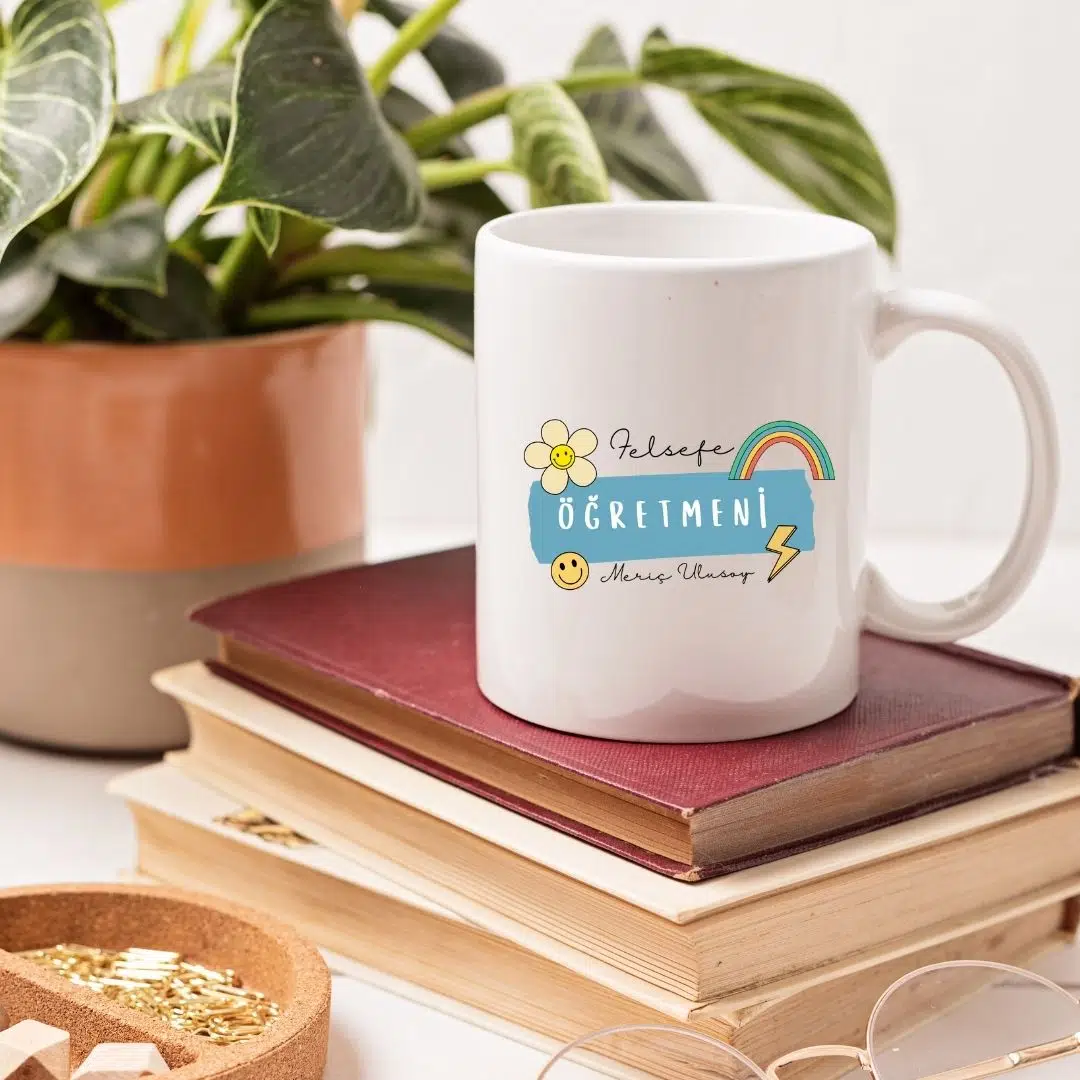 Felsefe Öğretmenine Özel Kupa Bardak – Renkli Tasarımlı Hediyelik Öğretmenler Günü Kupası