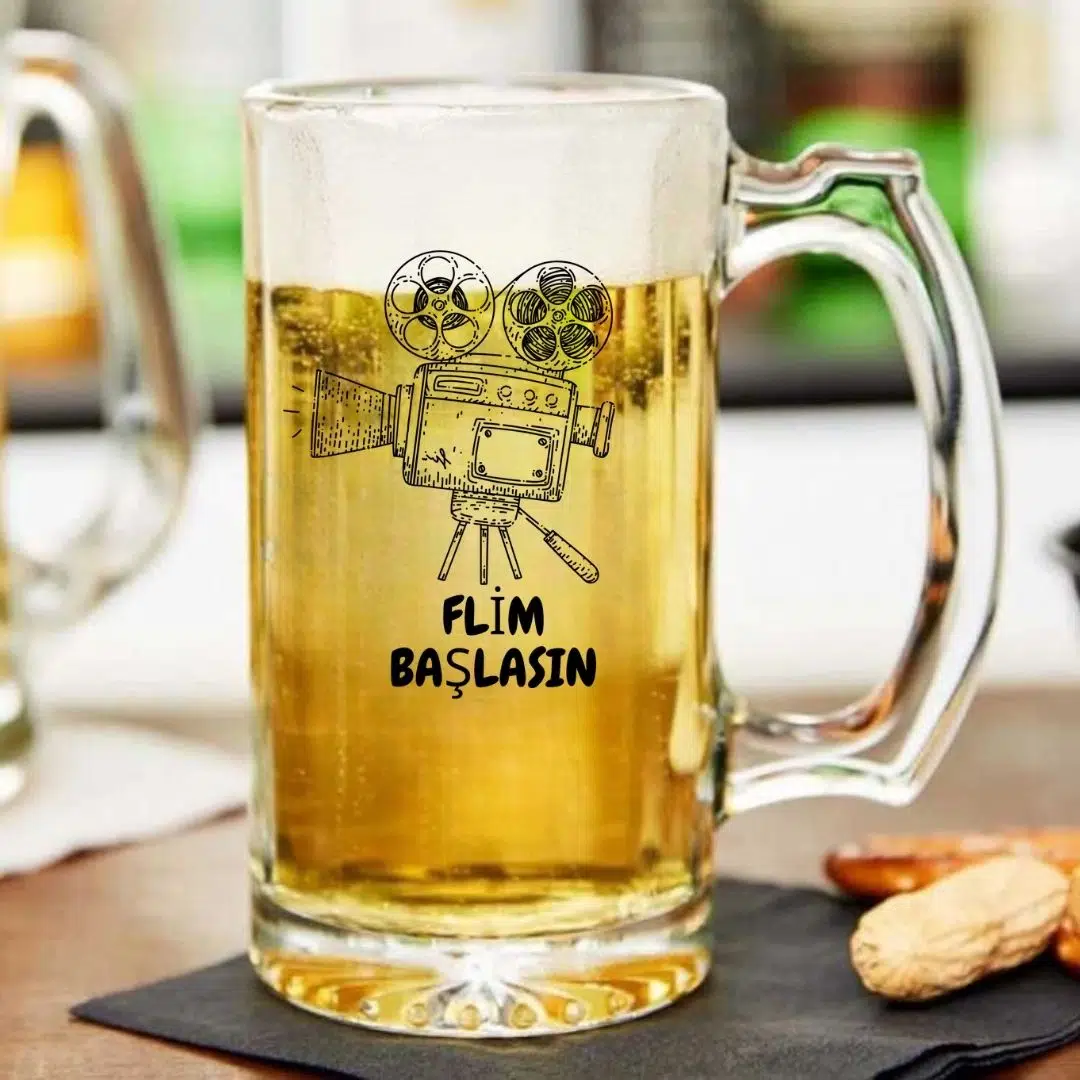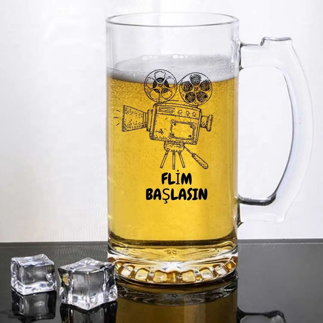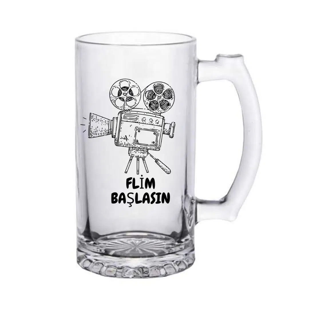 Film Başlasın Yazılı Cam Bira Bardağı – Sinema Temalı Mizahi Hediyelik Kupa