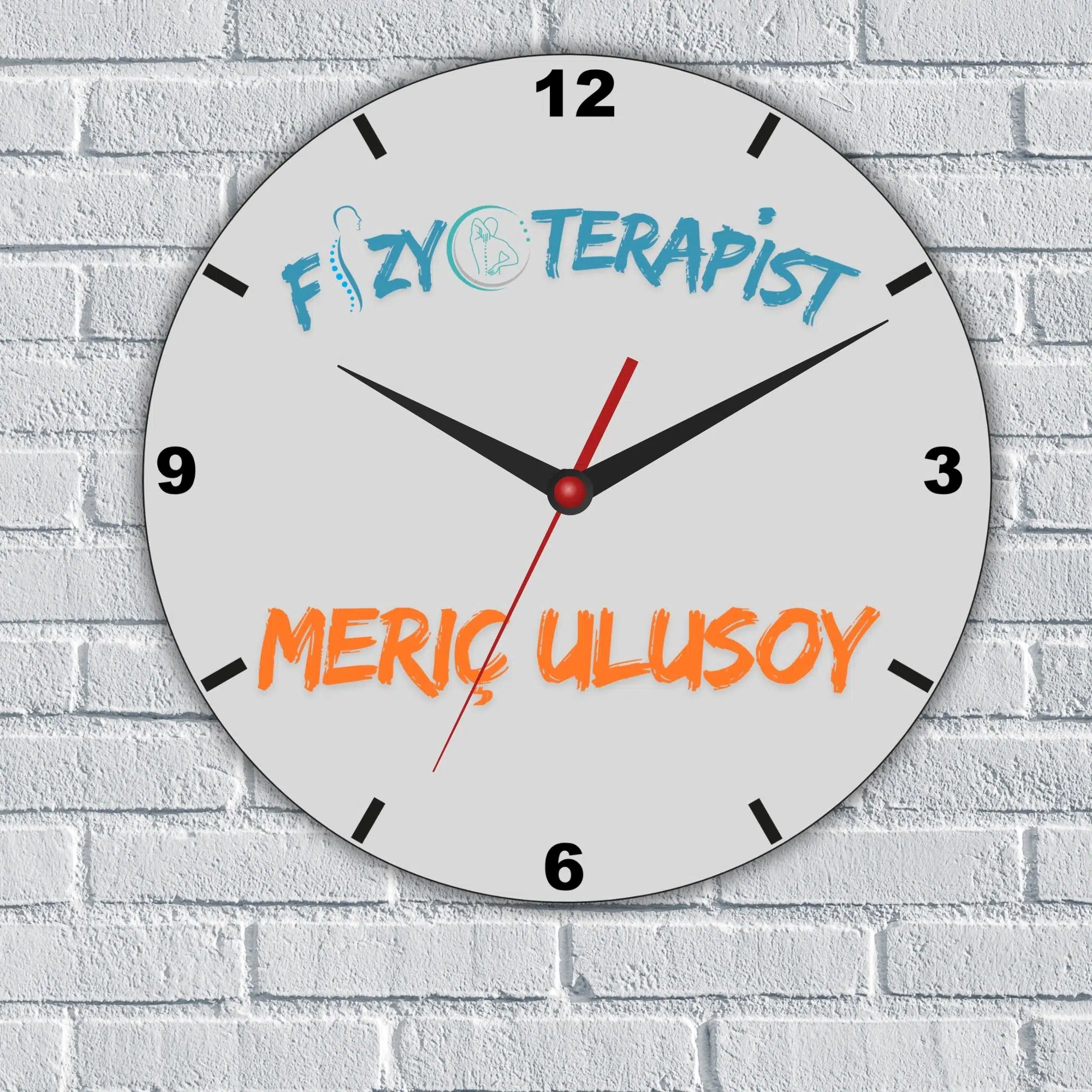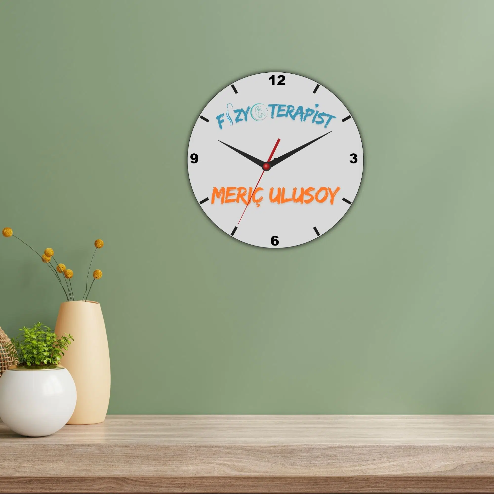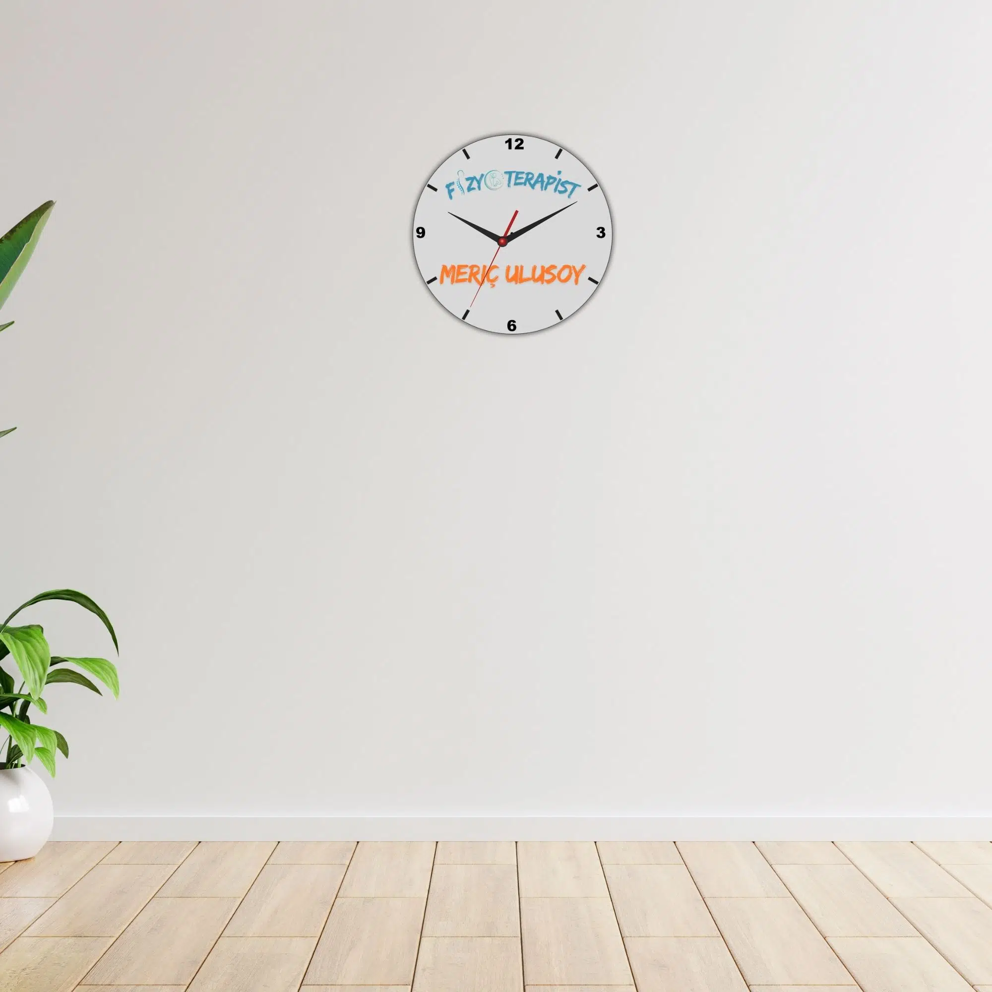 Fizyoterapistlere Özel İsim Yazılı Cam Duvar Saati