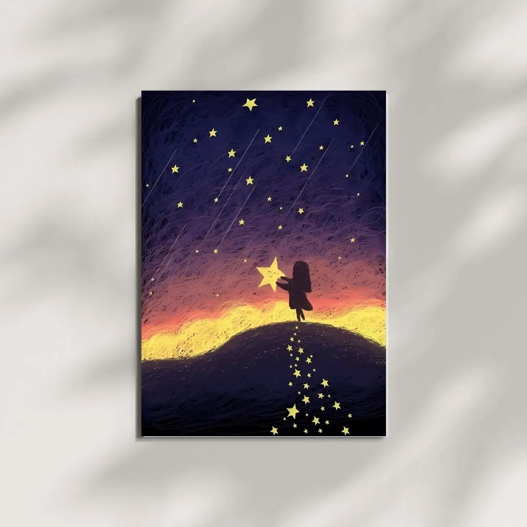 Gökyüzünden Kayan Yıldız Temalı MDF Tablo 20x28 cm