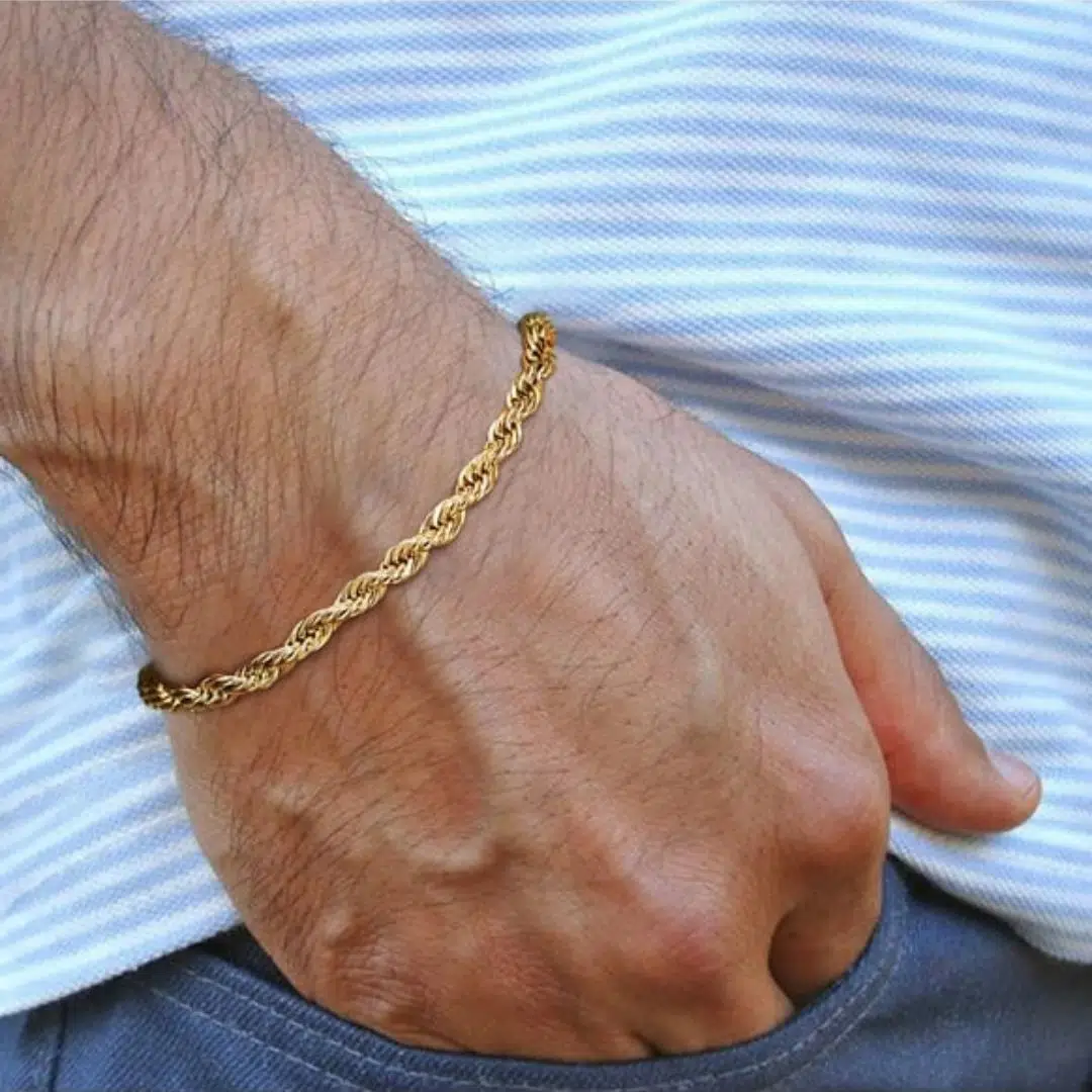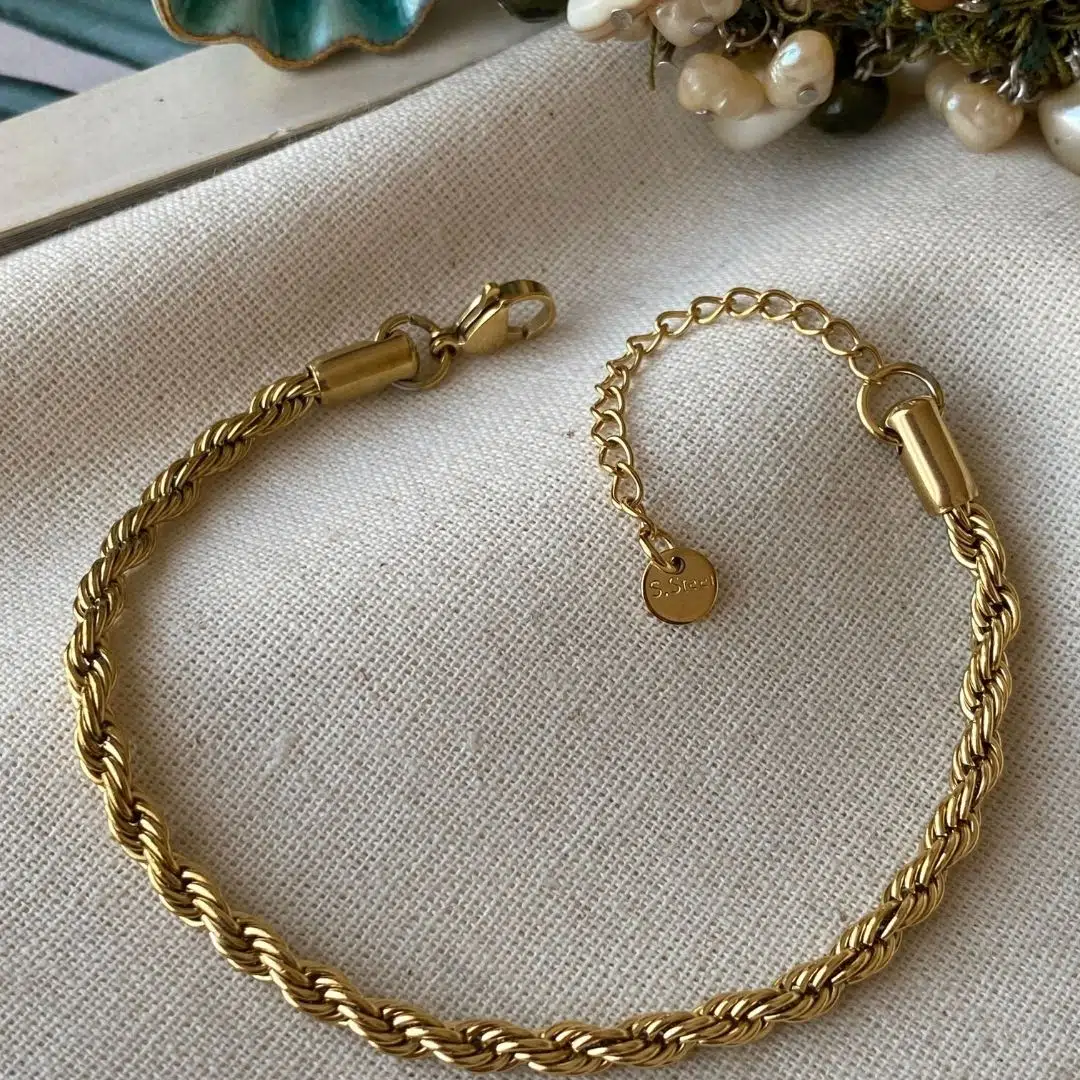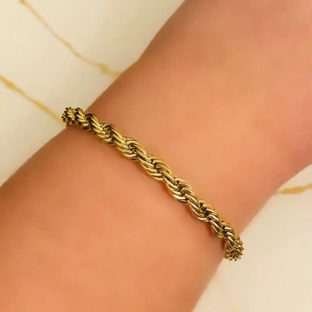 Gold Burgu Çelik Bileklik – 4 mm Şık Tasarım Ayarlanabilir Unisex Bileklik