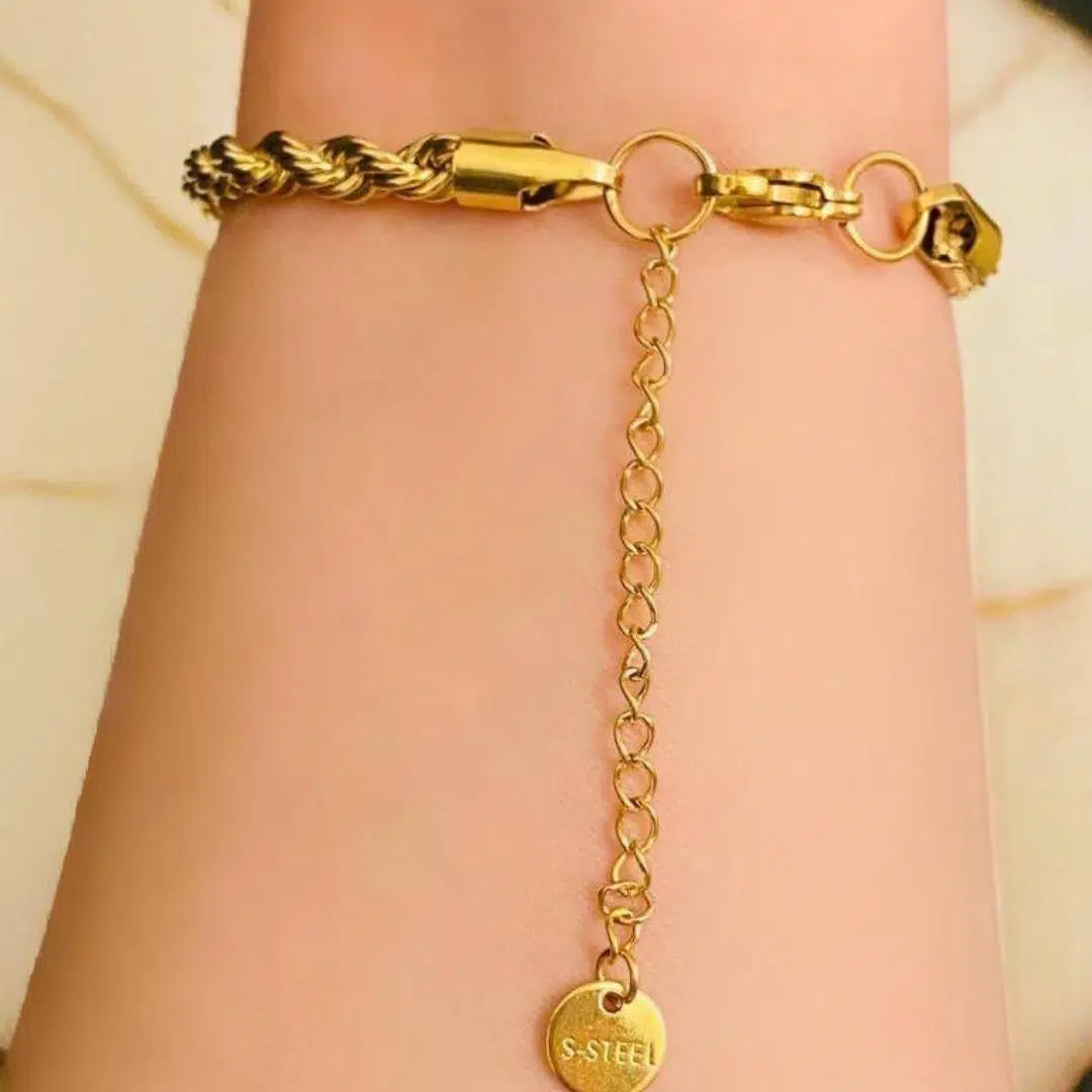 Kombinlerinize zarafet katacak bu gold çelik burgu bileklik, özel günlerde, doğum günü hediyelerinde veya günlük şıklık için mükemmel bir tamamlayıcı aksesuardır.