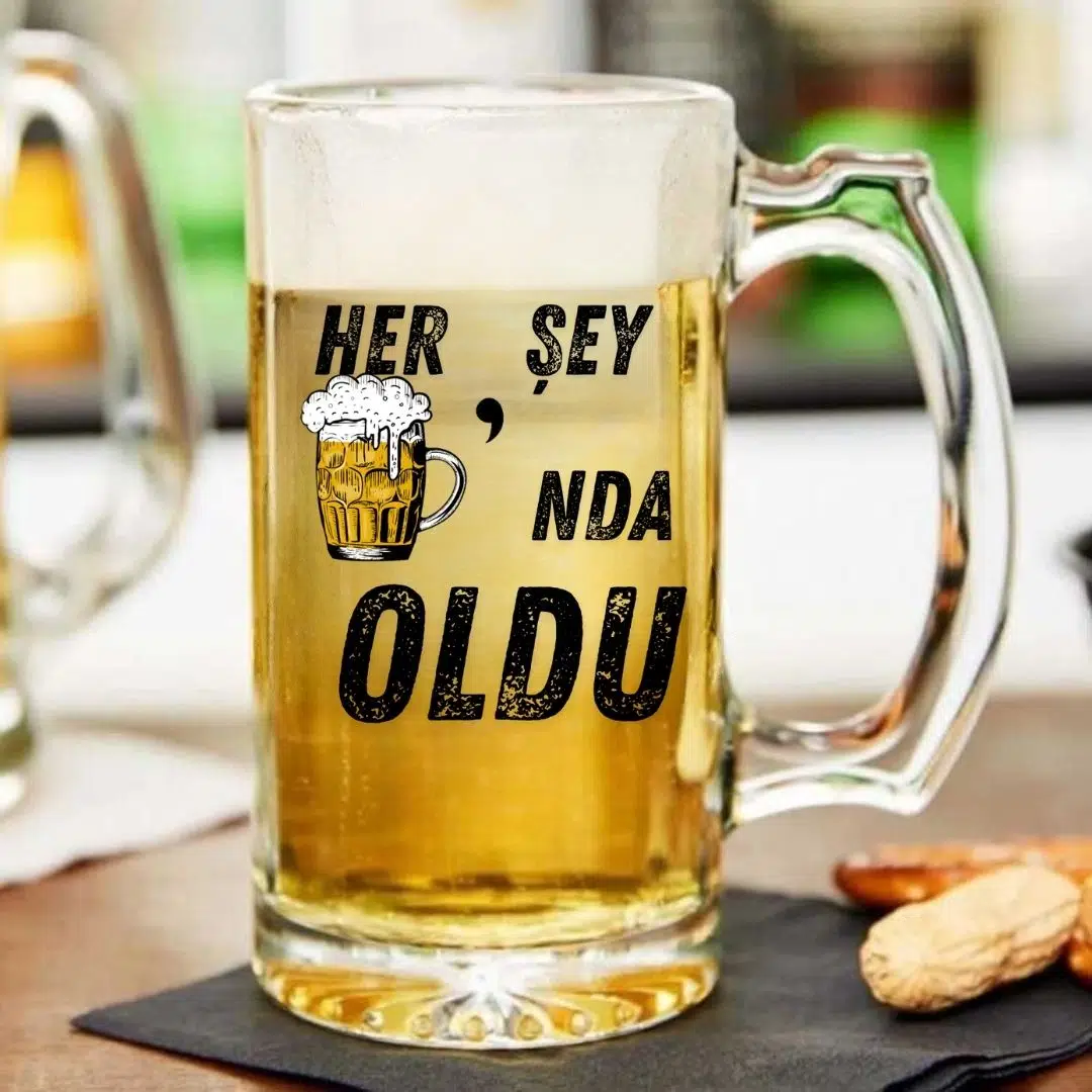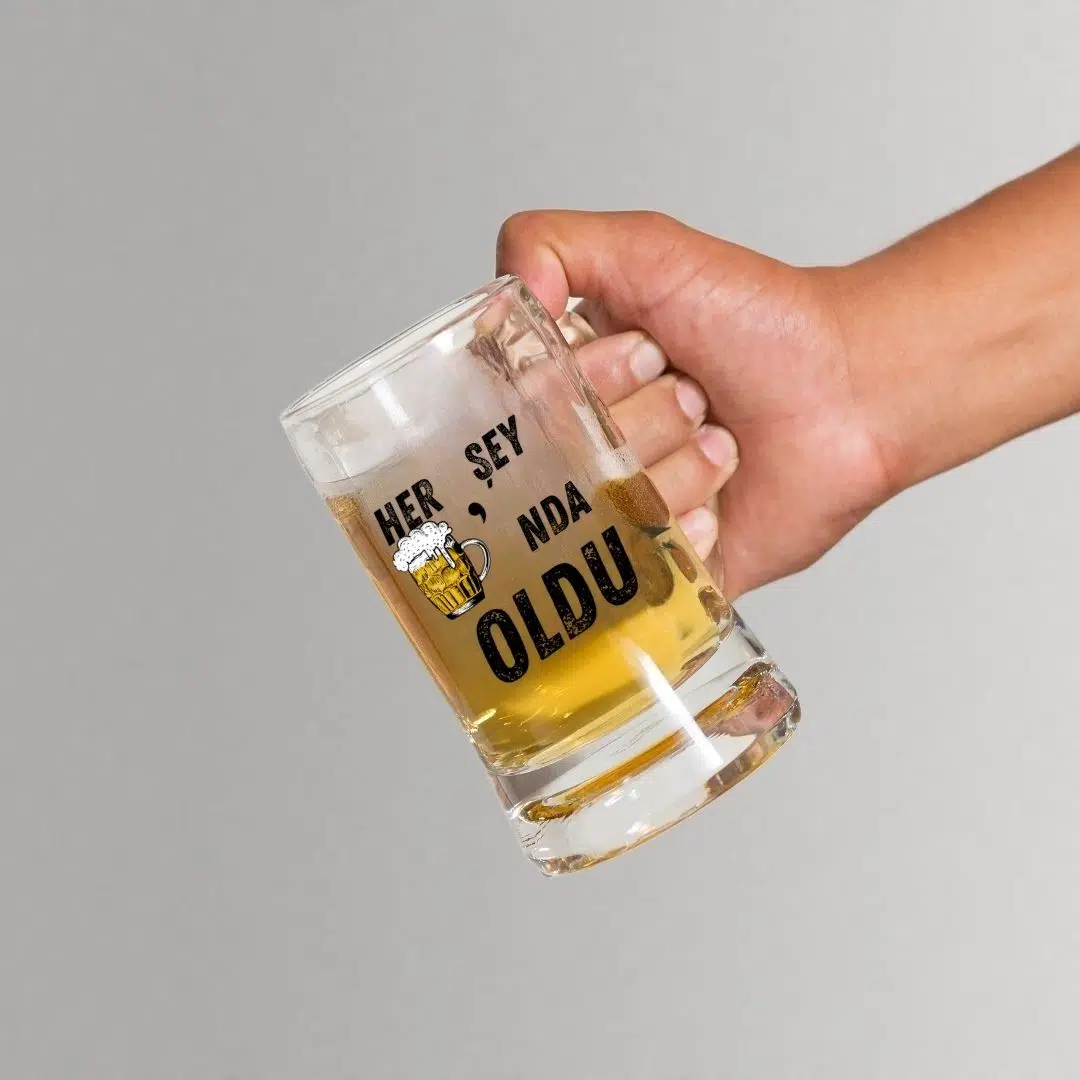 "Her Şey Biranda Oldu Tasarım Bira Bardağı – Mizahi Hediyelik Cam Bira Bardağı"