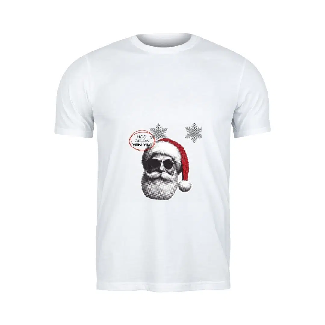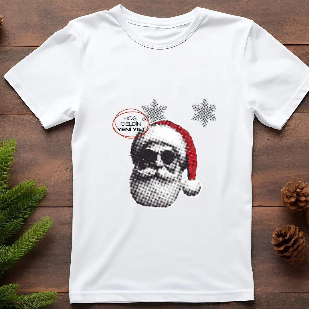 Hoş Geldin Yeni Yıl tasarımlı tişört, yılbaşı döneminde sevdiklerine verebileceğin eğlenceli ve anlamlı bir hediye seçeneği. Üzerindeki dikkat çekici Santa Claus (Noel Baba) temasıyla hem klasik hem de modern bir hava taşır.