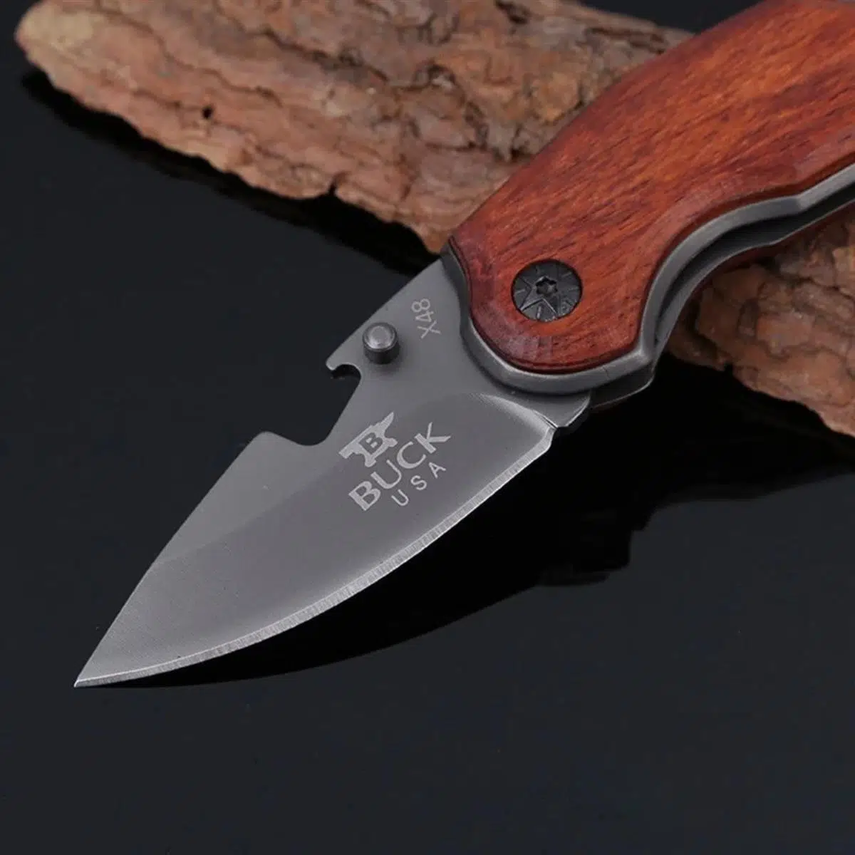 İsme Özel Buck Serisi X48 Ahşap Kabzeli Cep Çakısı