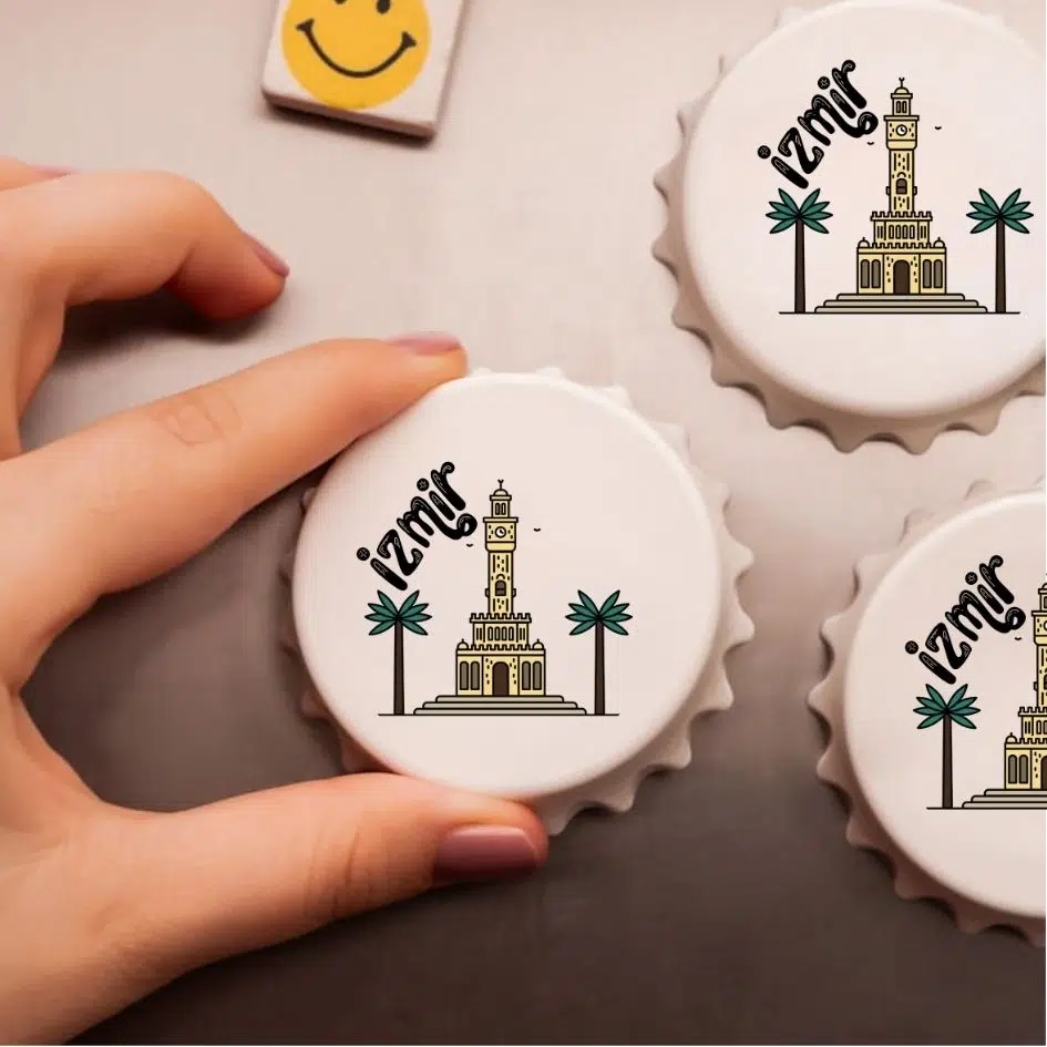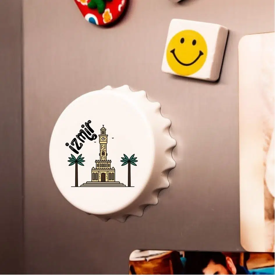 İzmir’in eşsiz simgeleriyle tasarlanmış bu özel açacak magnet, hem işlevsel hem de dekoratif bir hediyelik arayanlar için ideal bir seçenektir. Üzerindeki İzmir temalı detaylarla (Saat Kulesi, Kordon, palmiye ağaçları, deniz manzarası gibi) dikkat çeken bu ürün, buzdolabı gibi metal yüzeylere yapışabilen mıknatıslı yapısıyla pratik bir kullanım sunar.