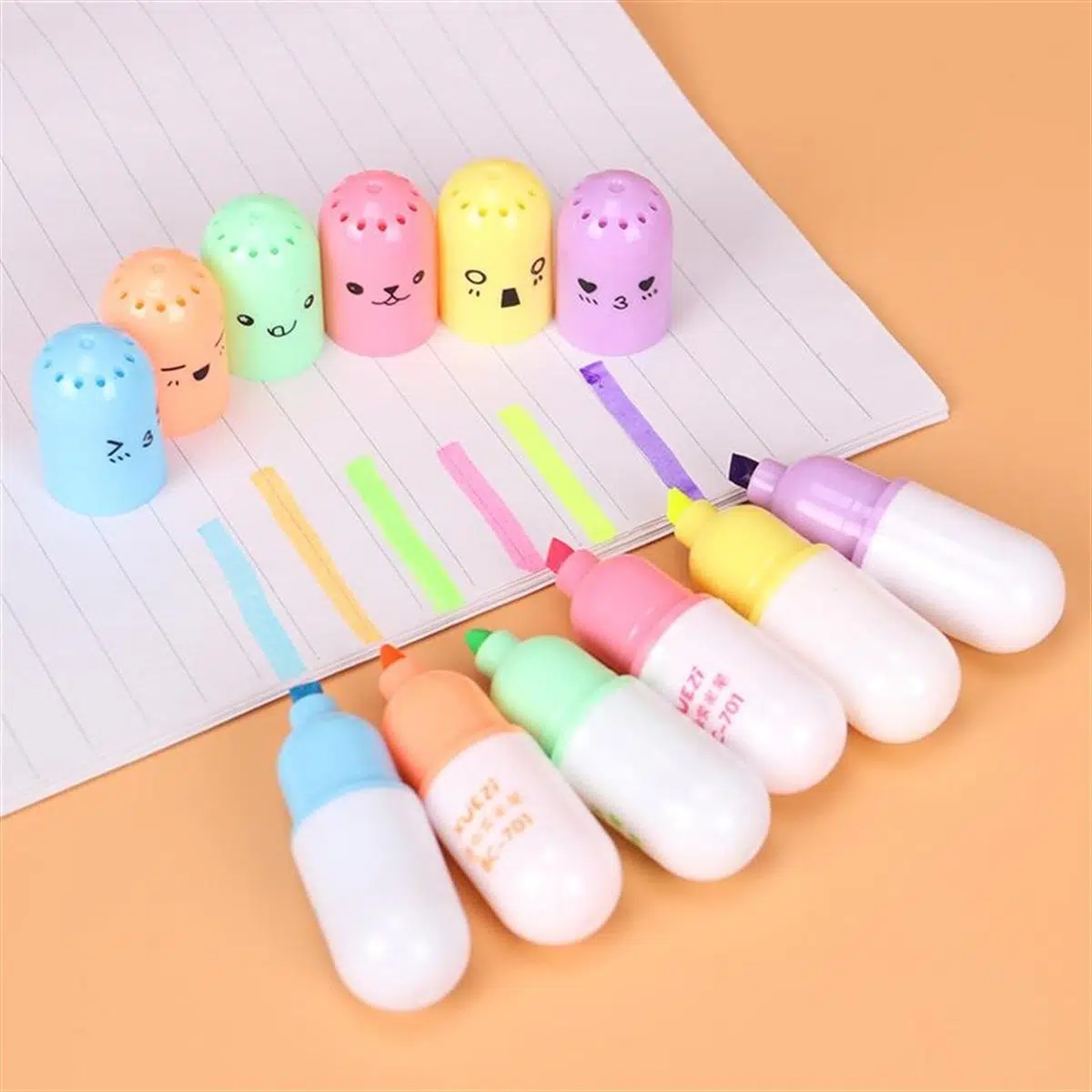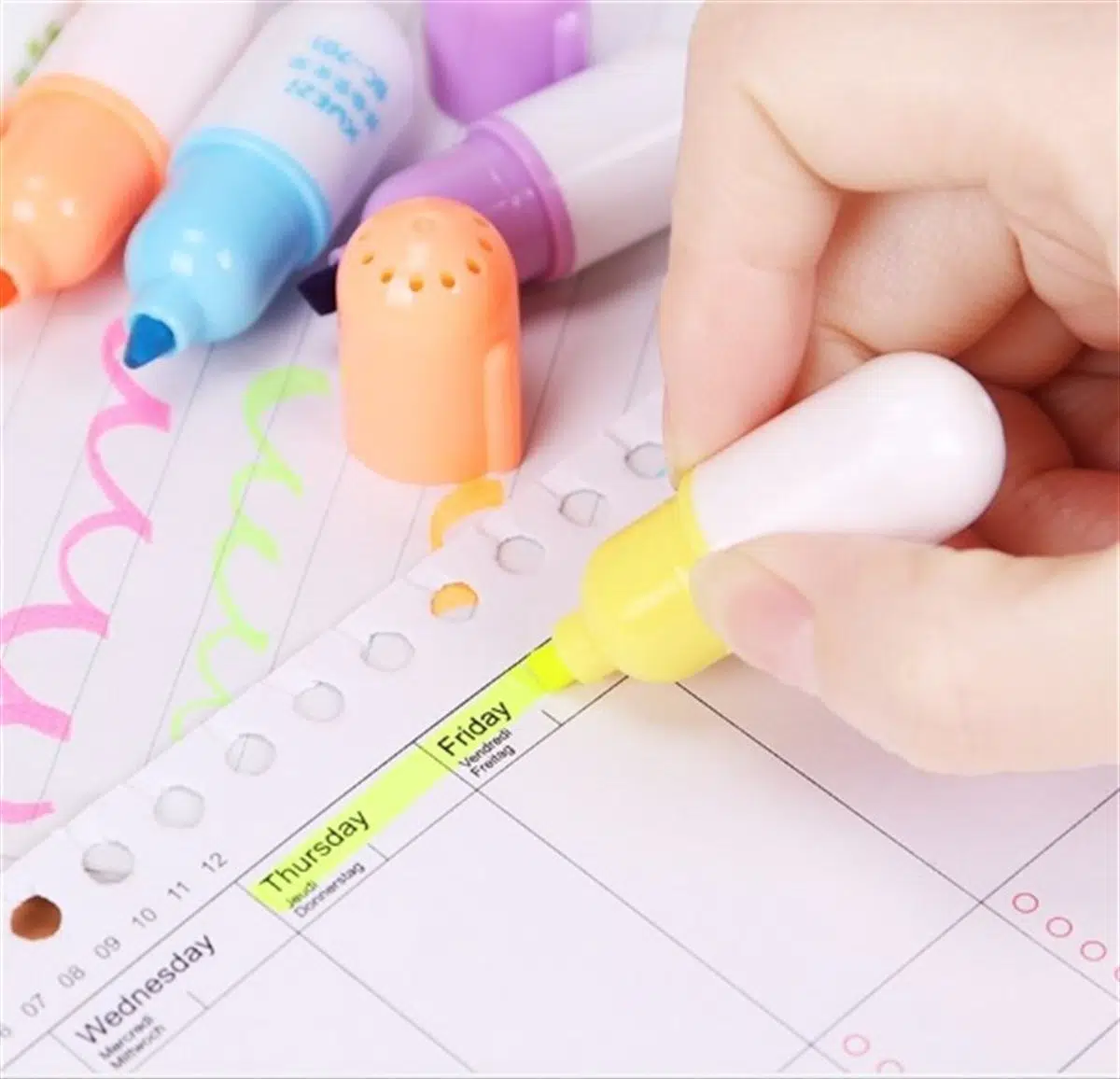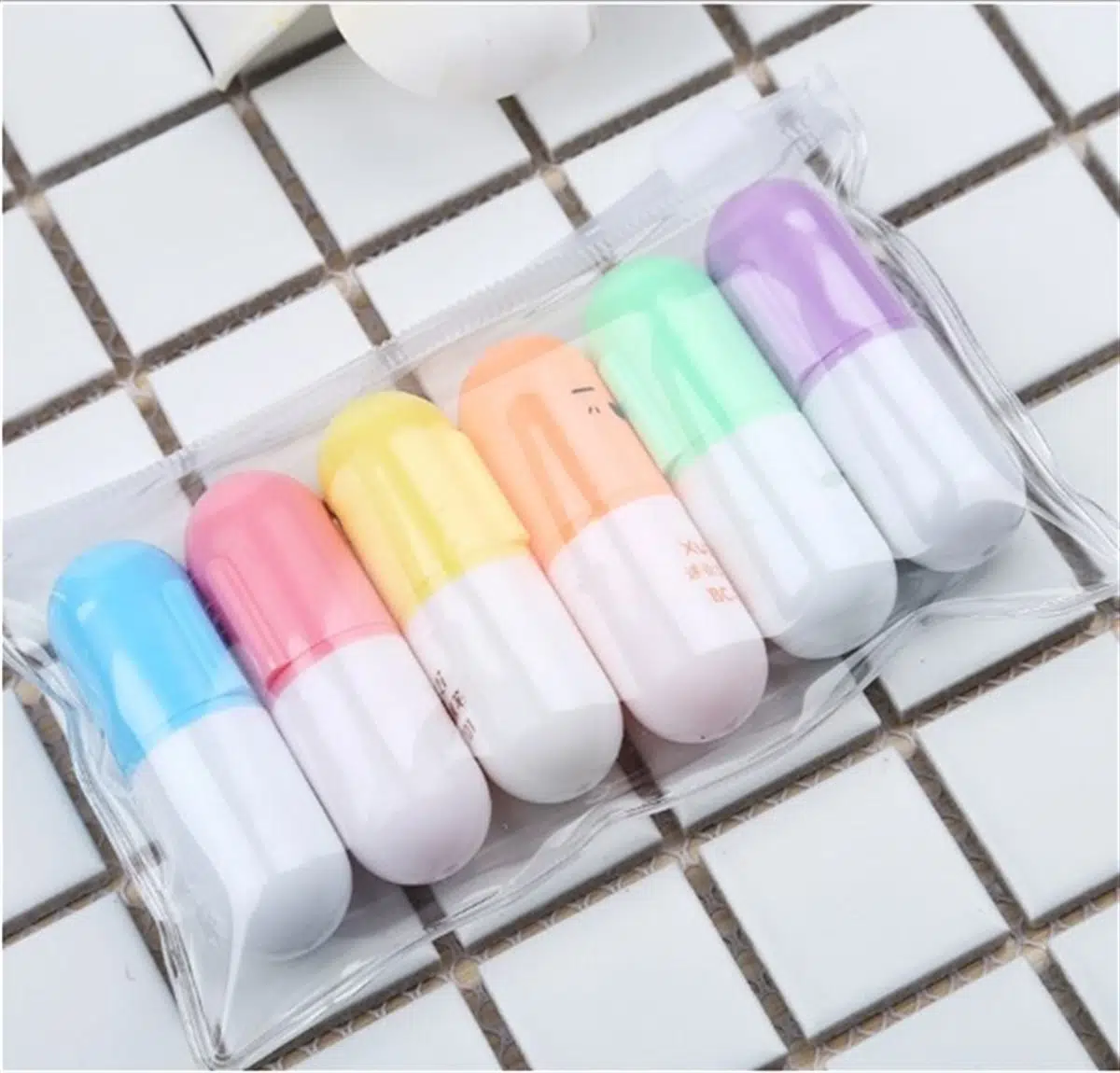 6 Renkli Çantalı Fosforlu Kalem Seti : Yeşil, Kırmızı, Mor, Mavi,Pembe ve Sarı