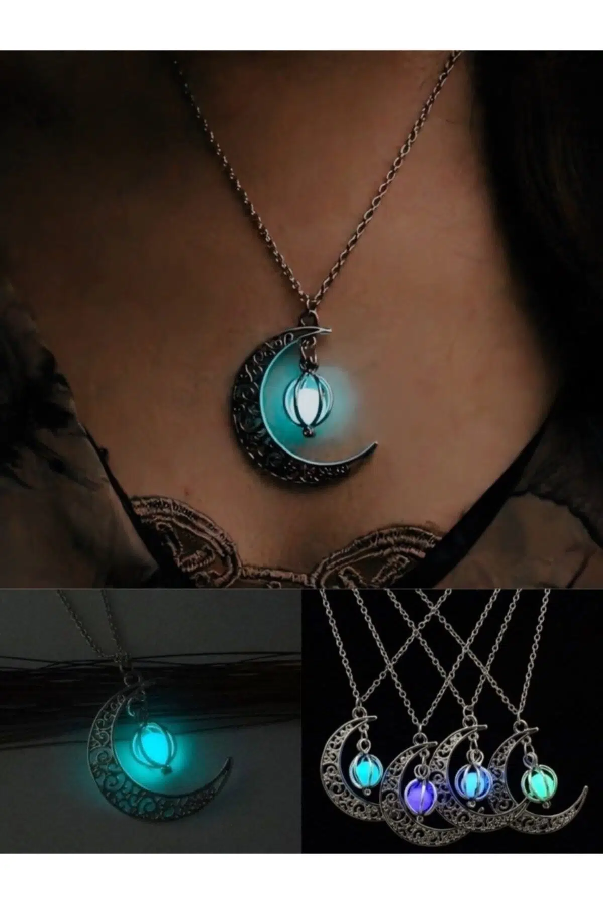 Karanlıkta Parlayan Ay Yıldız Moon Kolye