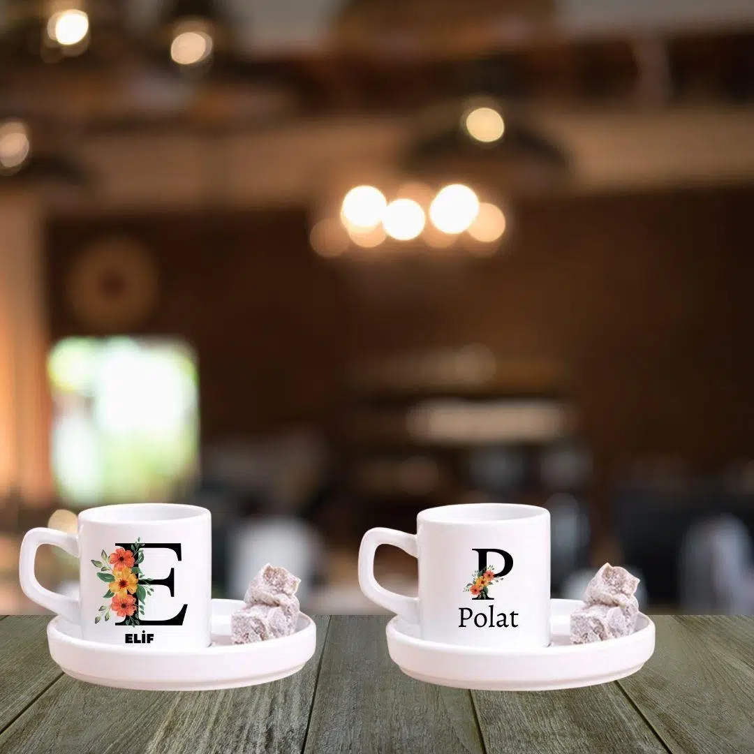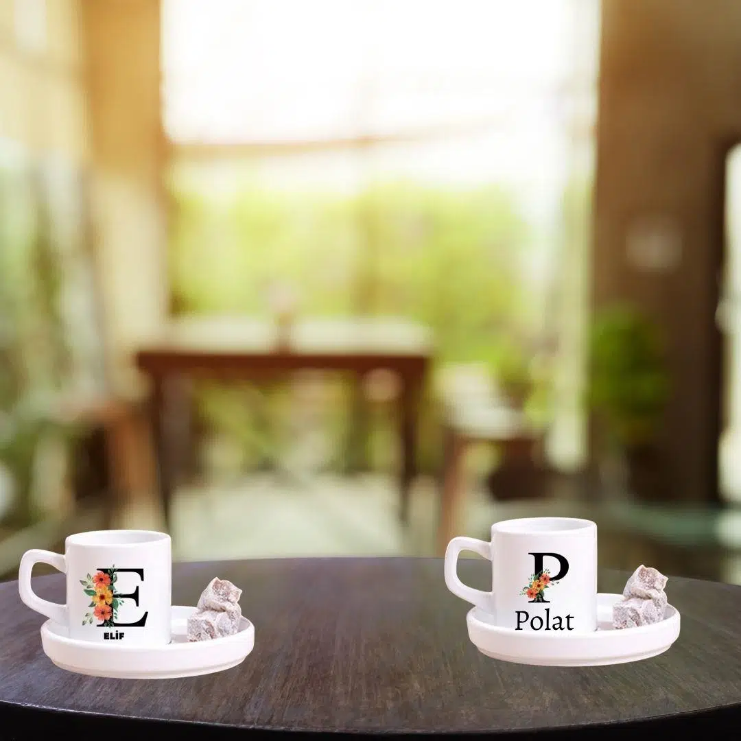Kişiye Özel 2 lİ Harfli Türk Kahve Fincanı ve Altı