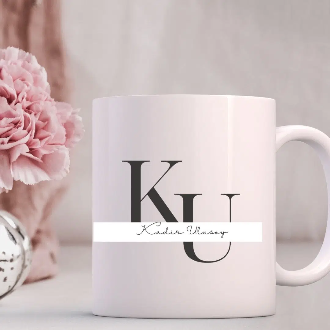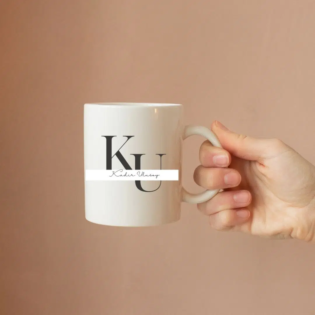 Kişiye Özel Baş Harf ve İsim Yazılı Şık Tasarım Kupa Bardak