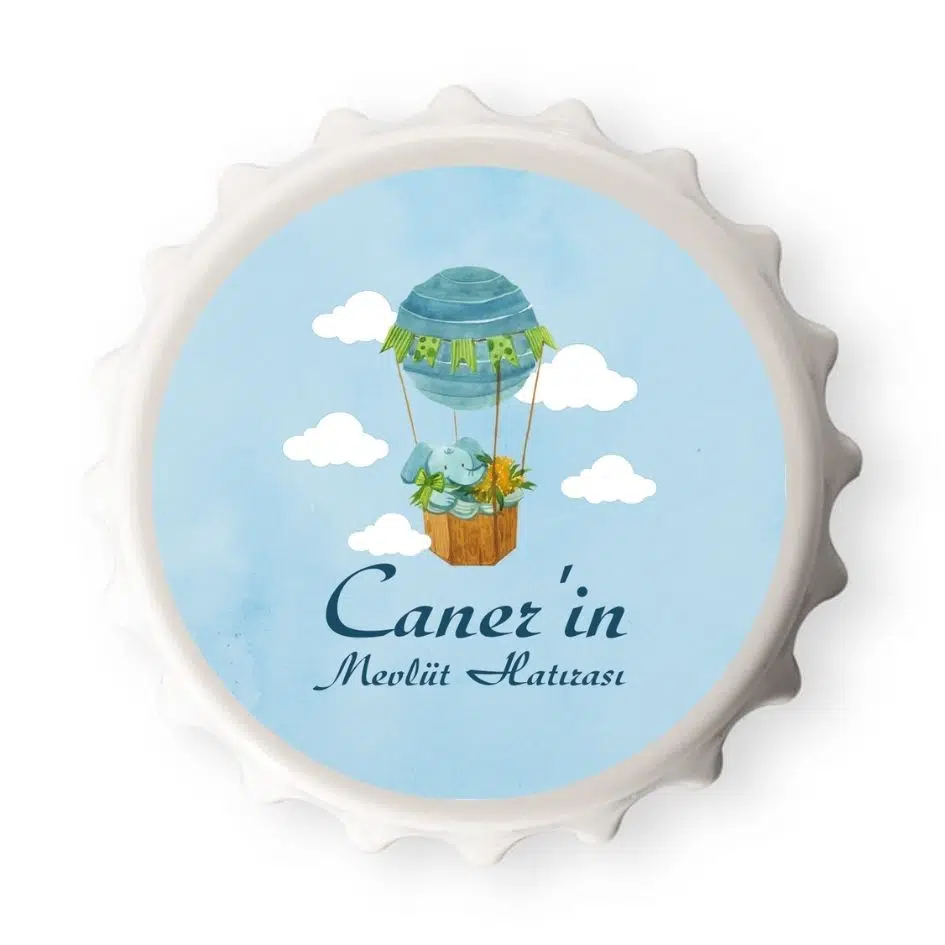 Kişiye Özel Bebek Mevlüt Hatırası Açacak Magnet – Balon ve Fil Tasarımlı