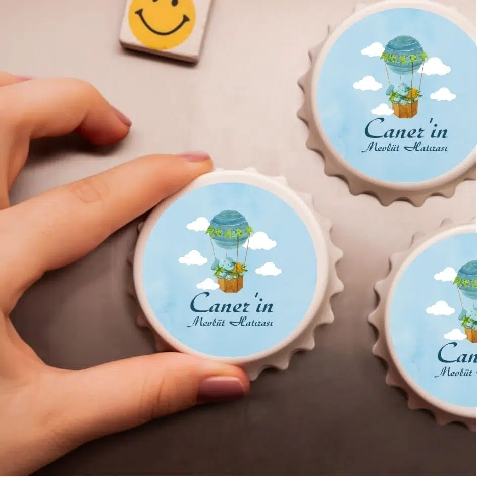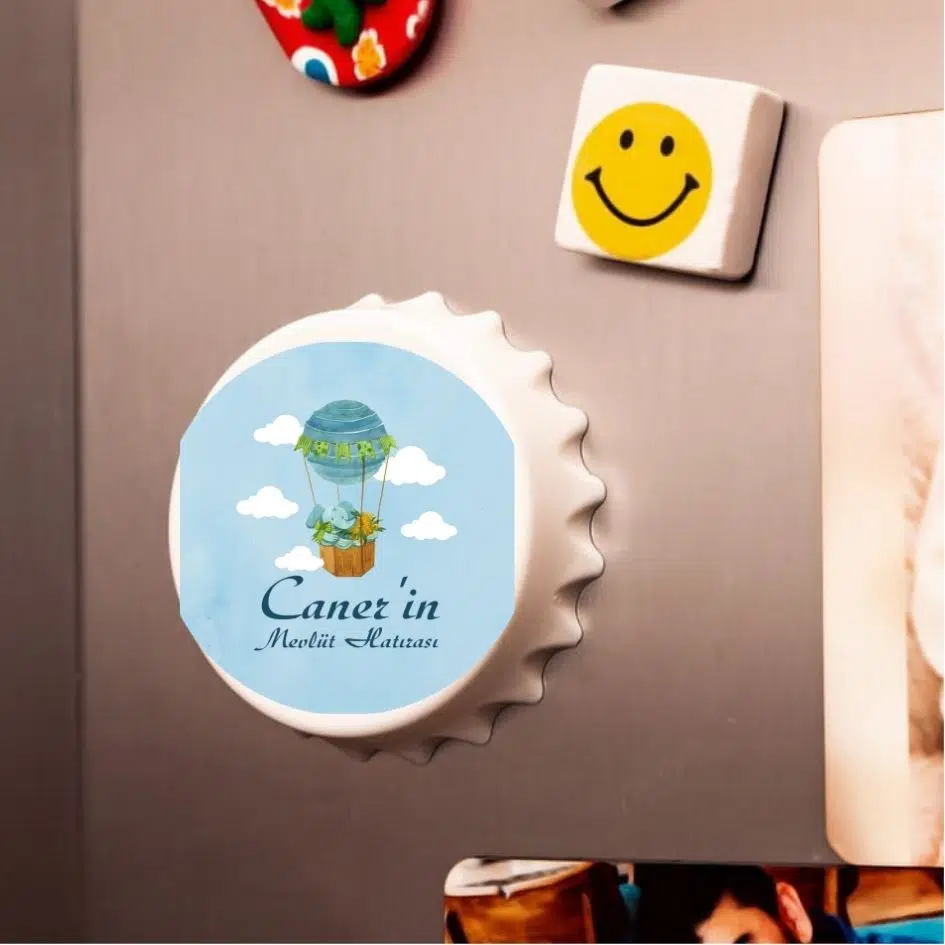 Bebeğinizin en özel günlerinden biri olan mevlüt etkinliğinde misafirlerinize unutulmaz bir hatıra bırakın! Kişiye özel isim yazılı bu açacak magnet, sevimli balon ve fil tasarımıyla hem kullanışlı hem de dekoratif bir üründür. Buzdolabına yapıştırılabilir mıknatıslı yapısıyla günlük kullanım için uygundur. İsim ve tarih gibi kişiselleştirme seçenekleriyle özel olarak hazırlanır. Mevlüt, doğum günü, diş buğdayı gibi tüm bebek organizasyonlarınızda dağıtabileceğiniz şık ve anlamlı bir hediyelik!
