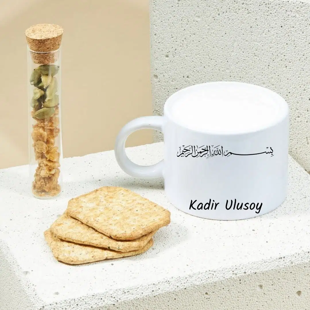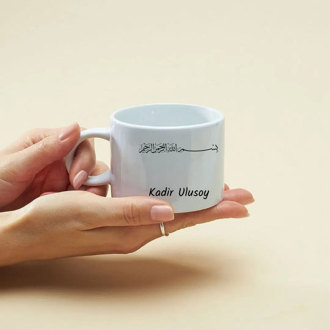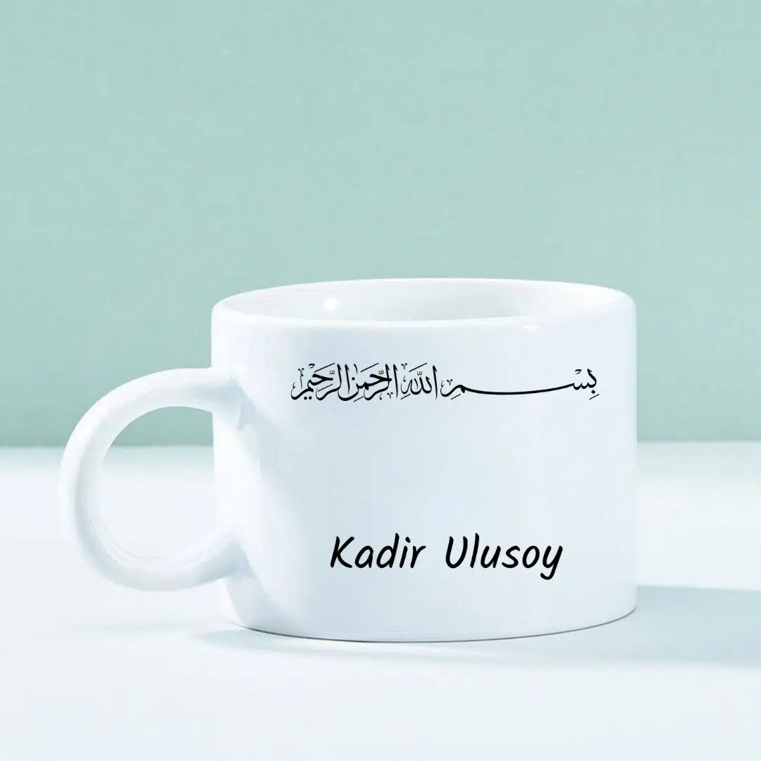 Kişiye Özel Besmele Tasarımlı Seramik Motto Kahve Fincanı