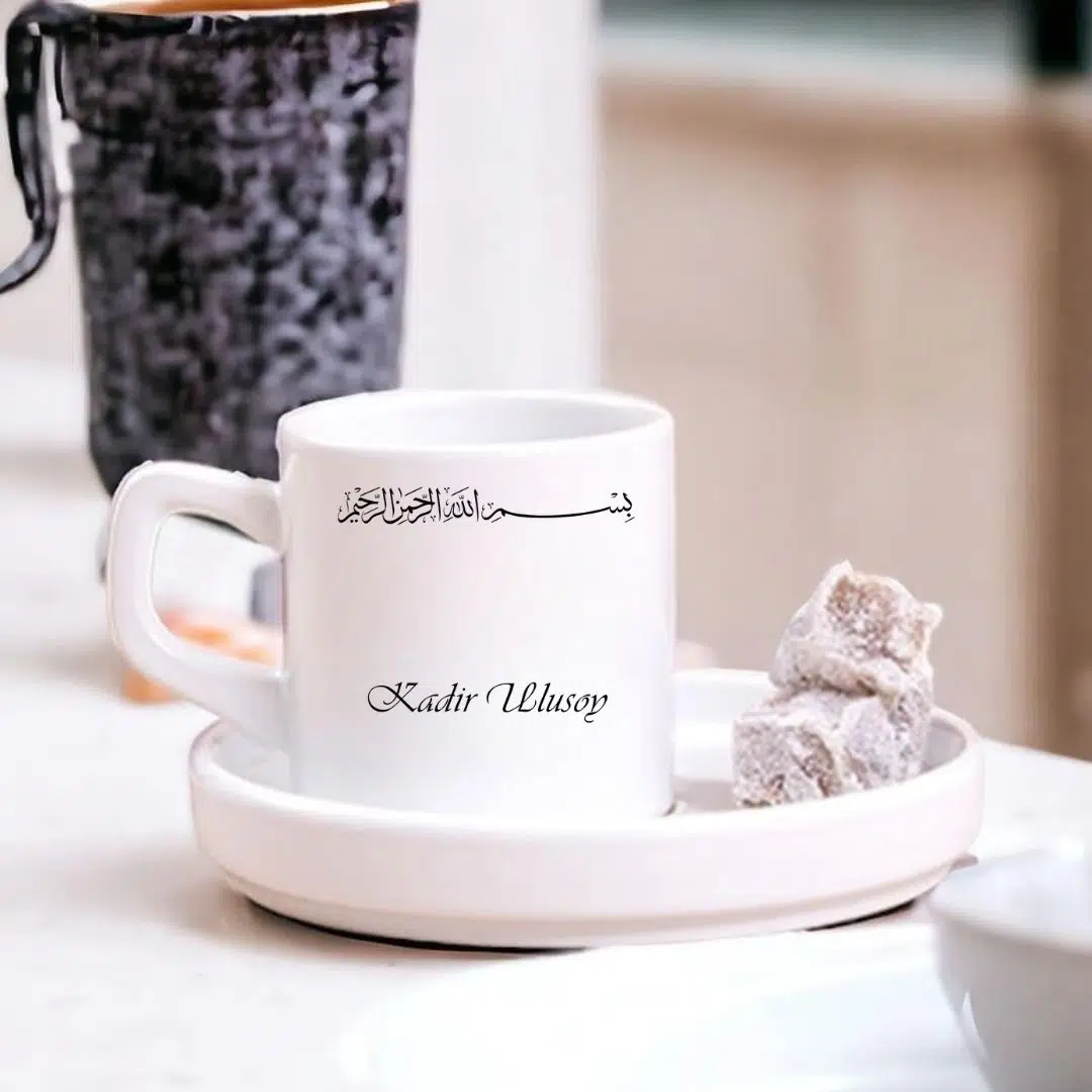 “Kişiye Özel Besmele Tasarımlı Türk Kahve Fincanı – Tekli Hediyelik Fincan”