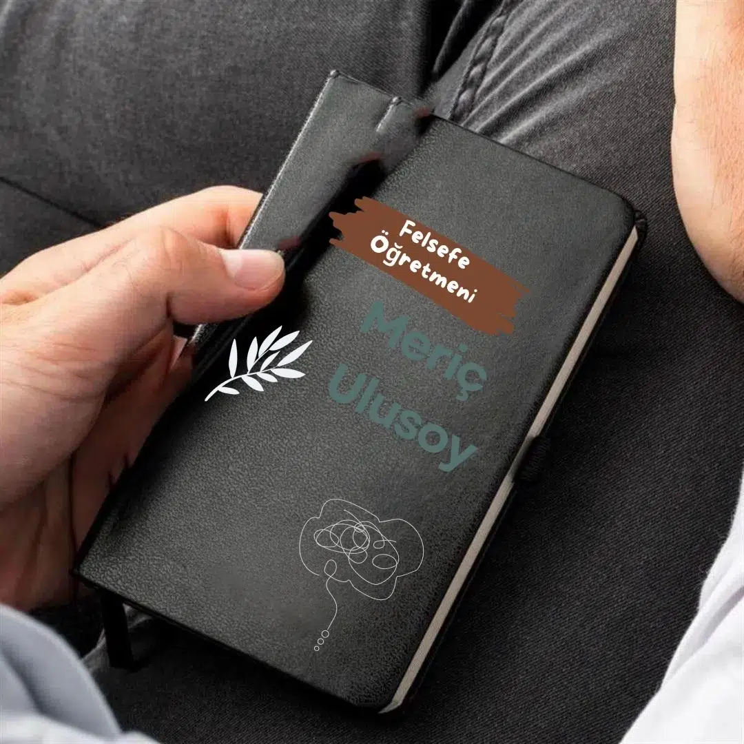 Kişiye Özel Felsefe Öğretmeni Tasarımlı Deri Kapaklı Not Defteri – İsme Özel Hediye