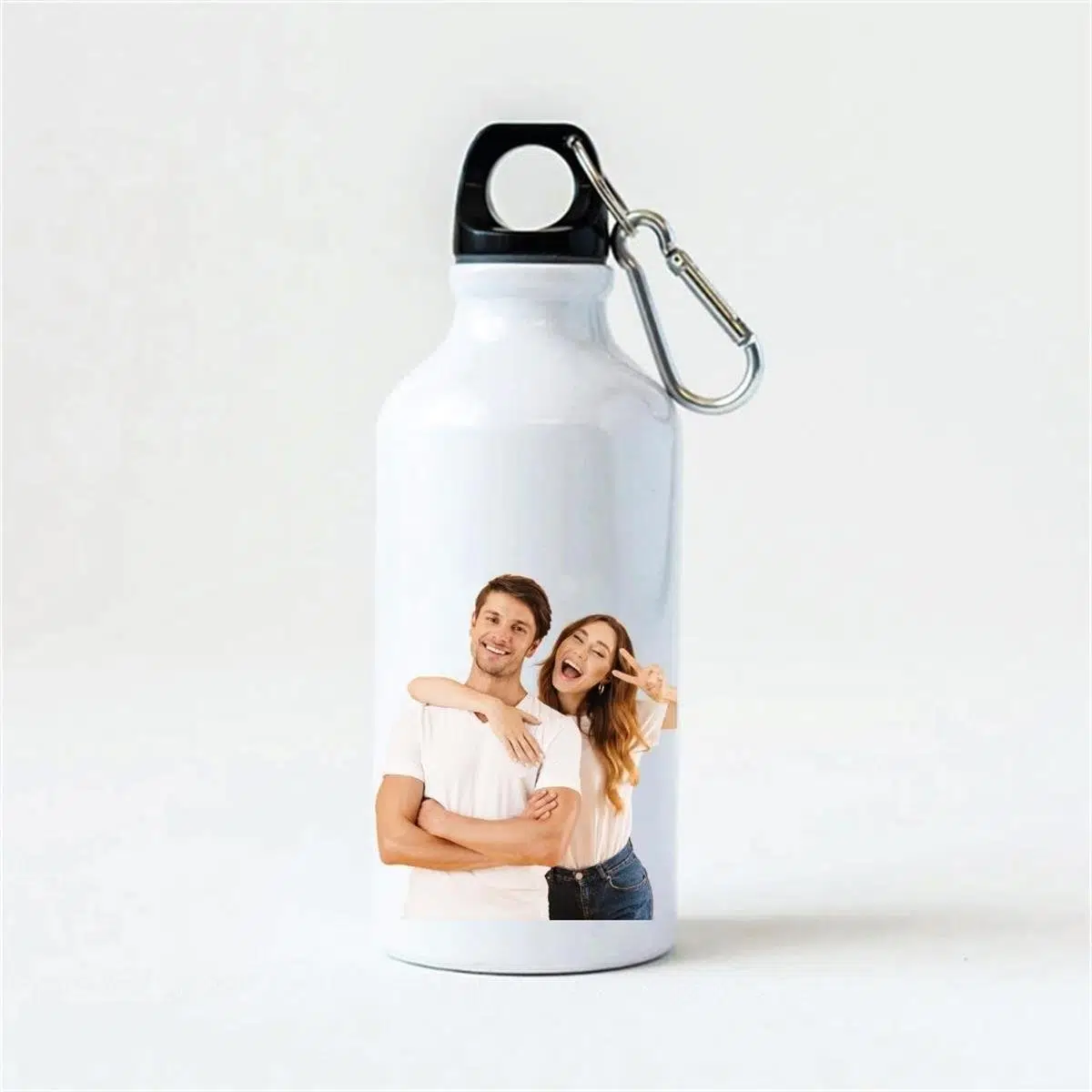 Kişiye Özel Fotoğraflı Kancalı Alüminyum Beyaz su matarası - 600mlt