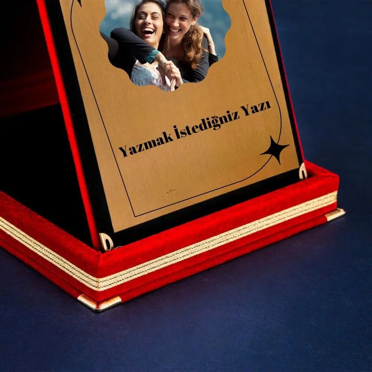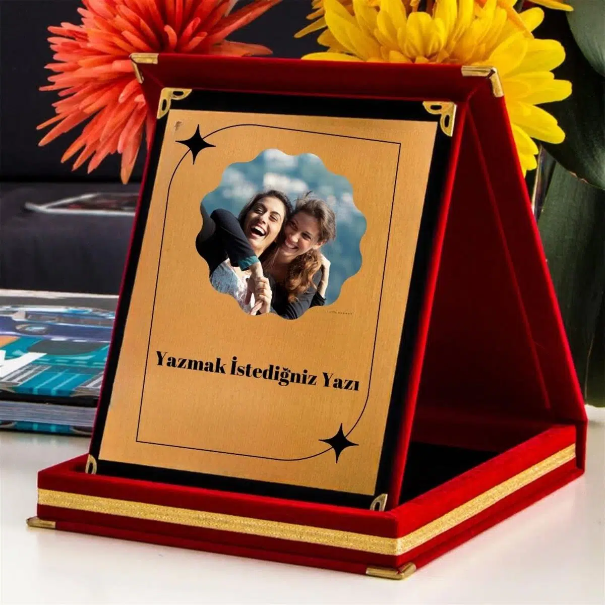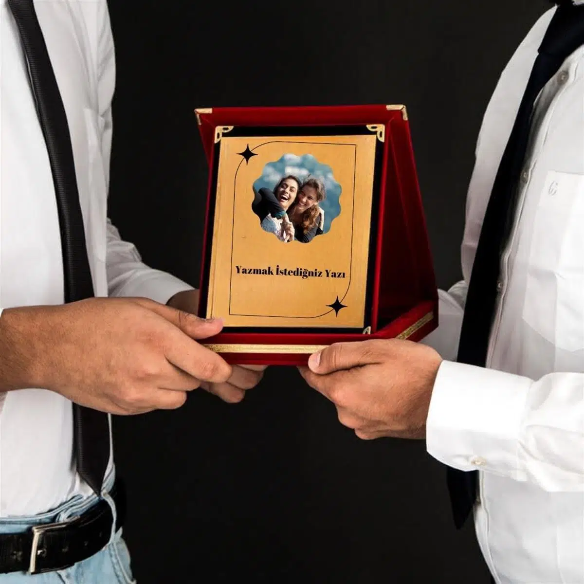 Arkadaşlarınıza sevgilinize takdim edebileceğiniz plaket, sayfamızda bulunan örnek ürün fotoğraflarında olduğu gibi isme ve kuruma özel olarak hazırlanıyor. Plaket, üzerine yazılacak mesaj ile anlam kazanırken, özgün tasarımıyla ve kırmızı kadife kutusuyla şık bir görünüme kavuşuyor.