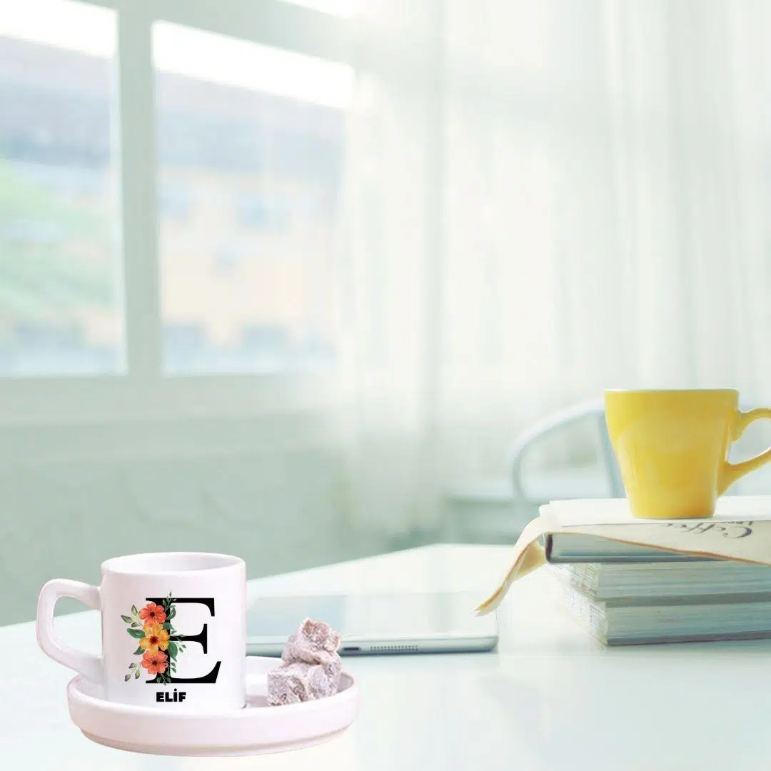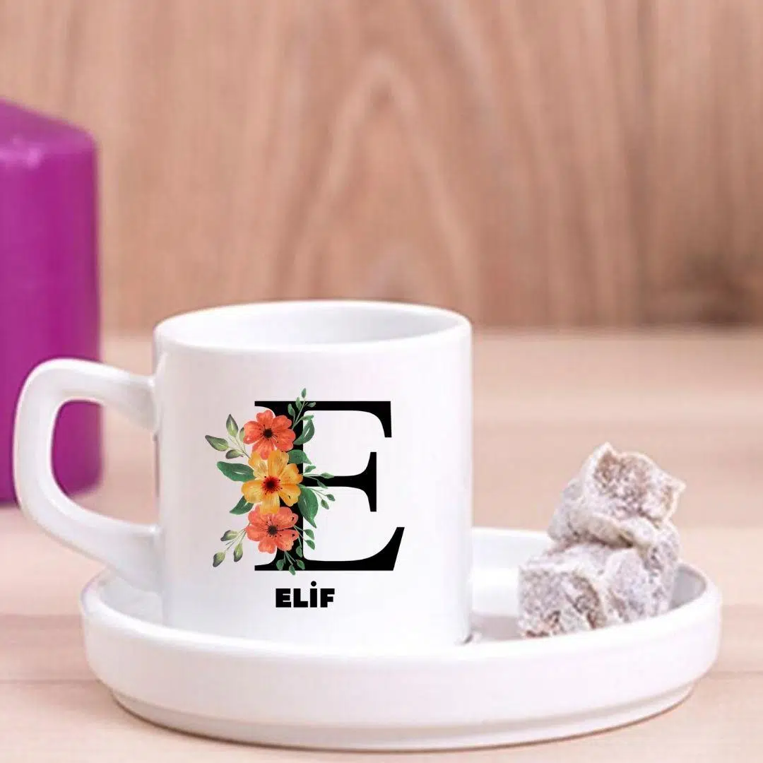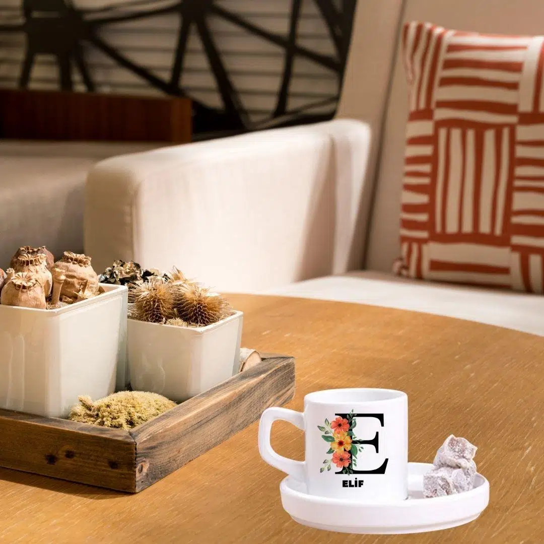 Kişiye Özel Harfli Türk Kahve Fincanı ve Altı