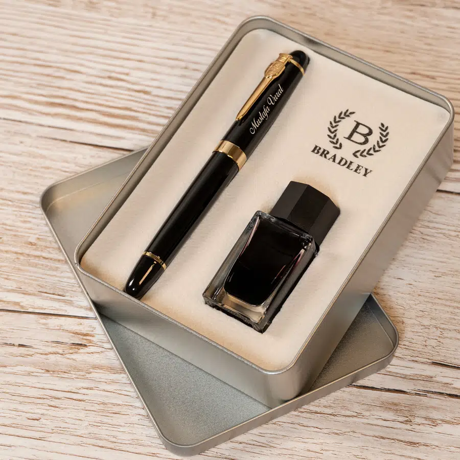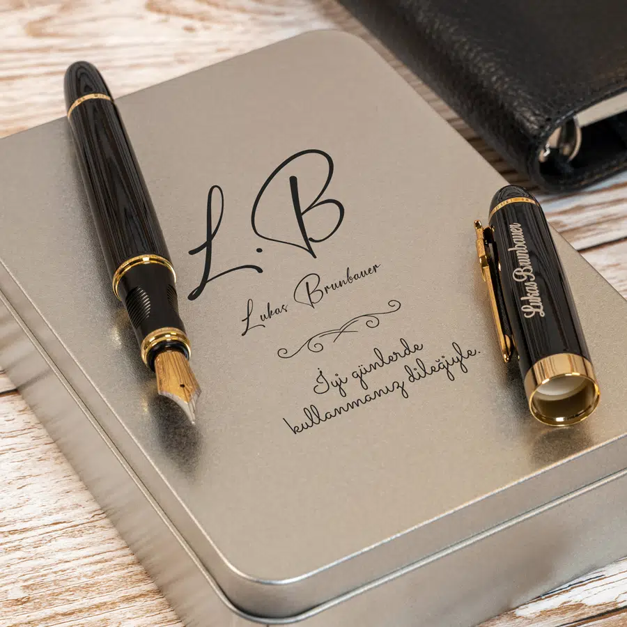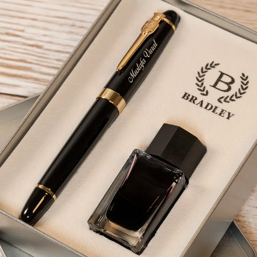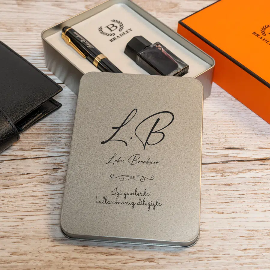 Kişiye Özel İsim Logolu Siyah Gold Dolma Kalem, zarif tasarımı ve özel kişiselleştirme seçeneğiyle dikkat çekiyor. Bu set, özel tasarımıyla Osmanlı tuğrasını ve kişinin adını içeren metal kutusuyla öne çıkıyor. Bradley Dolma Kalem, yüksek kaliteli malzemelerden üretilmiş olup, yazı yazarken konfor ve şıklığı bir arada sunar. Bu özel set, hem kendiniz için hem de sevdikleriniz için mükemmel bir hediye seçeneği olabilir. mağzamızda bu benzersiz ürünü inceleyerek, sevdiklerinizi veya kendinizi özel hissettirebilirsiniz.