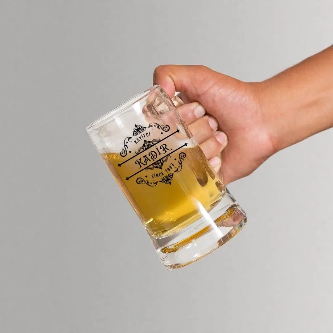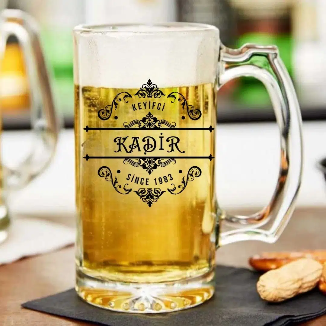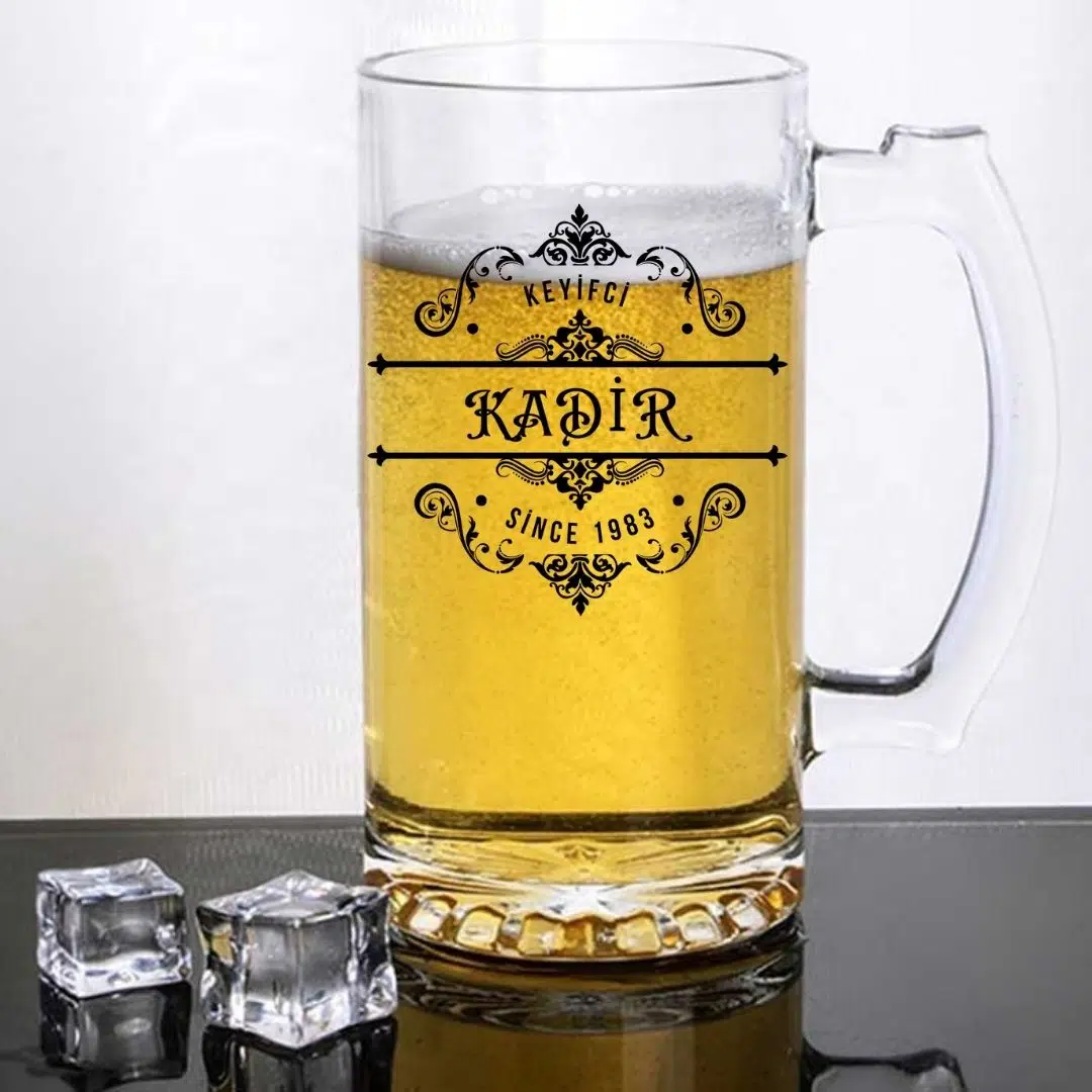 kişiye özel bira bardağı, isim baskılı cam bardak, yıl baskılı bira bardağı, hediyelik bardak, erkeklere hediye, özel tasarım bira kupası.