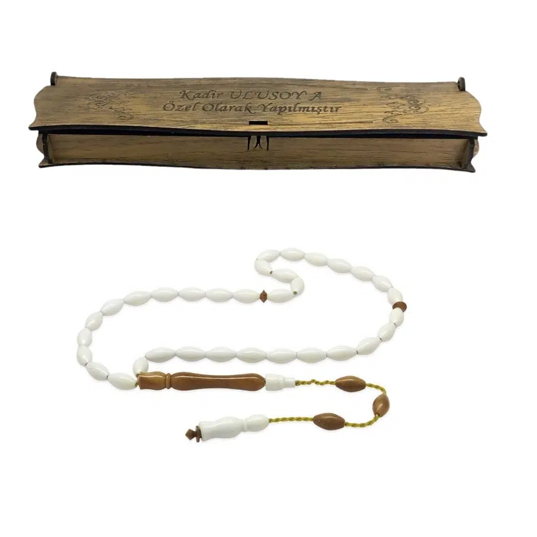 Bu tür özel tasarım tespihler, genellikle el işçiliği ile üretilir ve kişiye özel olarak hazırlandığı için hediyelik olarak da tercih edilir. Kutulu olması, tespihin korunmasını ve saklanmasını kolaylaştırırken aynı zamanda hediye edilirken daha şık bir sunum sağlar.