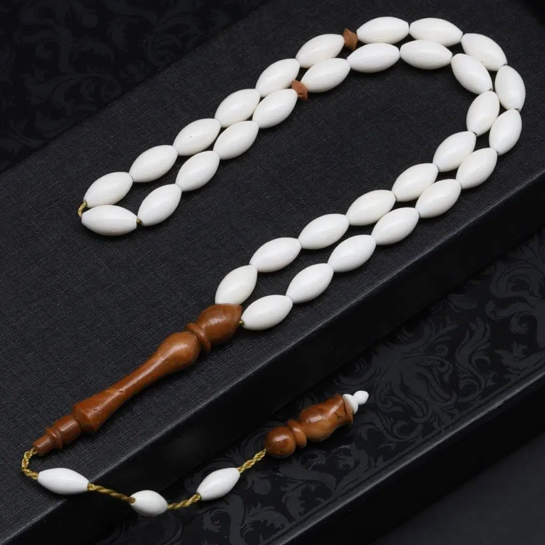 Kişiye özel kutulu, imamesi kuka tasarım ve deve kemiği malzemesinden üretilmiş bir tespih, özellikle tespih koleksiyoncuları ve geleneksel el işçiliğine değer verenler için oldukça özel bir ürün olabilir. Kuka, Hindistan cevizi kabuğundan elde edilen doğal bir malzemedir ve anti-bakteriyel özellikleriyle bilinir. Deve kemiği ise dayanıklılığı ve estetik görünümüyle tercih edilen bir malzemedir.