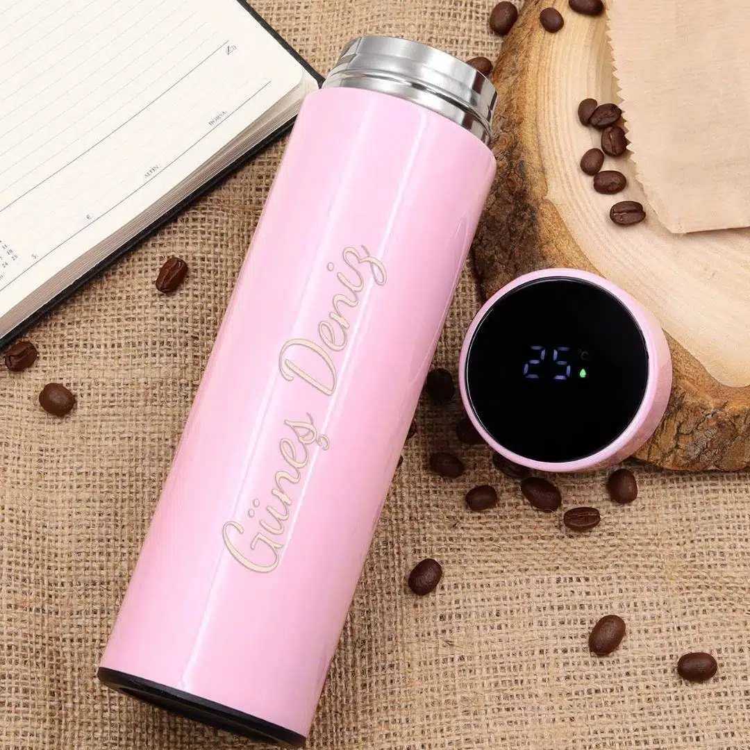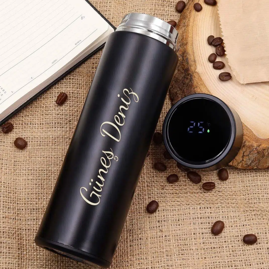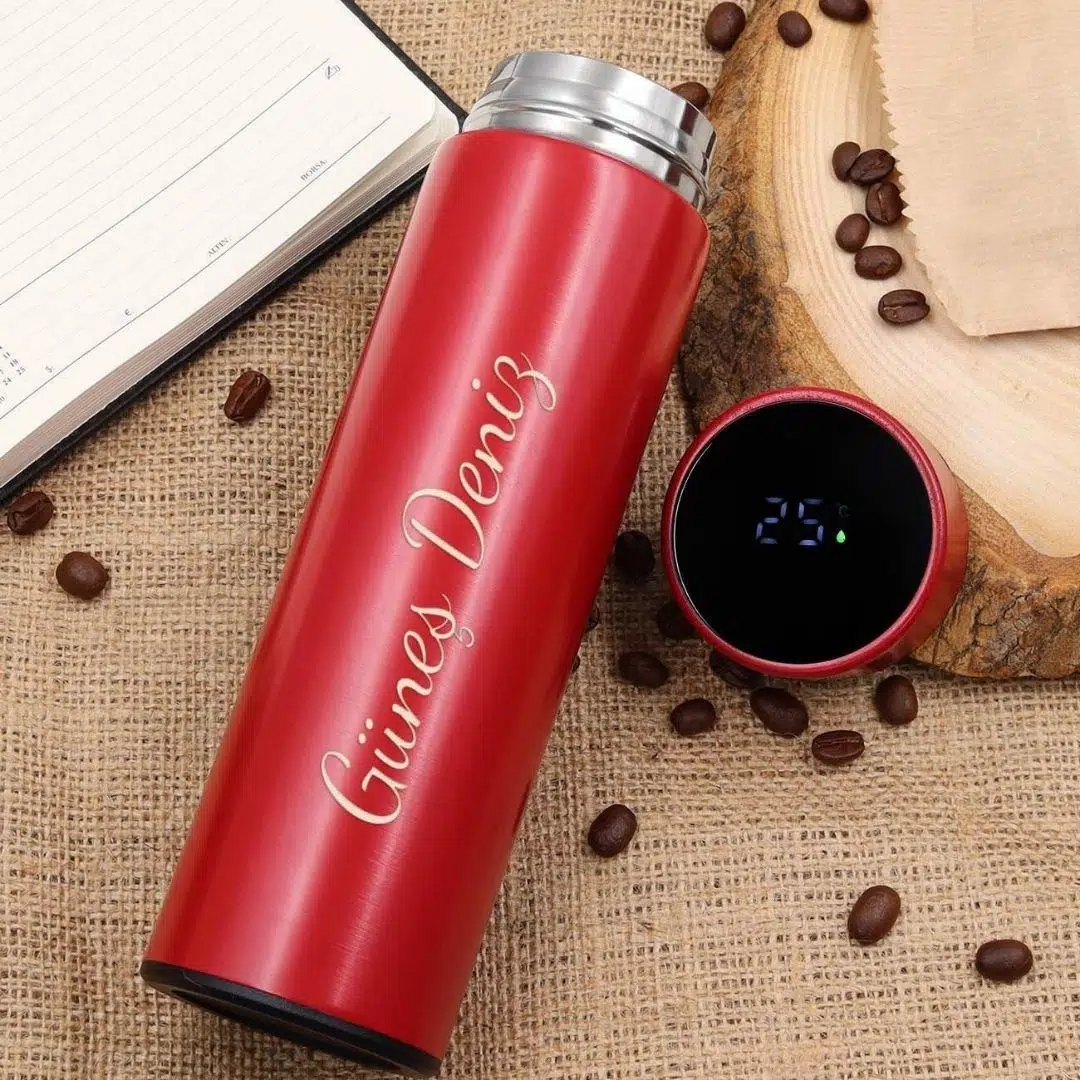 Kişiye Özel LED Sıcaklık Göstergeli Akıllı Vakumlu Yalıtımlı Termos 500ml, sıcak ve soğuk içeceklerinizin sıcaklığını korurken, aynı zamanda şık ve kişiselleştirilmiş bir termos deneyimi sunuyor. LED sıcaklık göstergesi sayesinde içeceğinizin sıcaklığını kolayca takip edebilirsiniz. Vakumlu yapısı sayesinde içeceğinizin sıcaklığını uzun süre koruyarak dışarıdan gelebilecek etkilere karşı dayanıklı bir yapı sunar. 500ml hacmiyle yanınızda rahatlıkla taşıyabileceğiniz bu termos, spor yaparken, iş yerinde veya seyahatlerinizde vazgeçilmez bir yardımcınız olacak. Kişiye özel olarak tasarlanabilen bu termos, sevdiklerinize de özel bir hediye seçeneği sunuyor. Daha fazla detay ve kişiselleştirme seçenekleri için mağzamızı ziyaret edebilirsiniz.