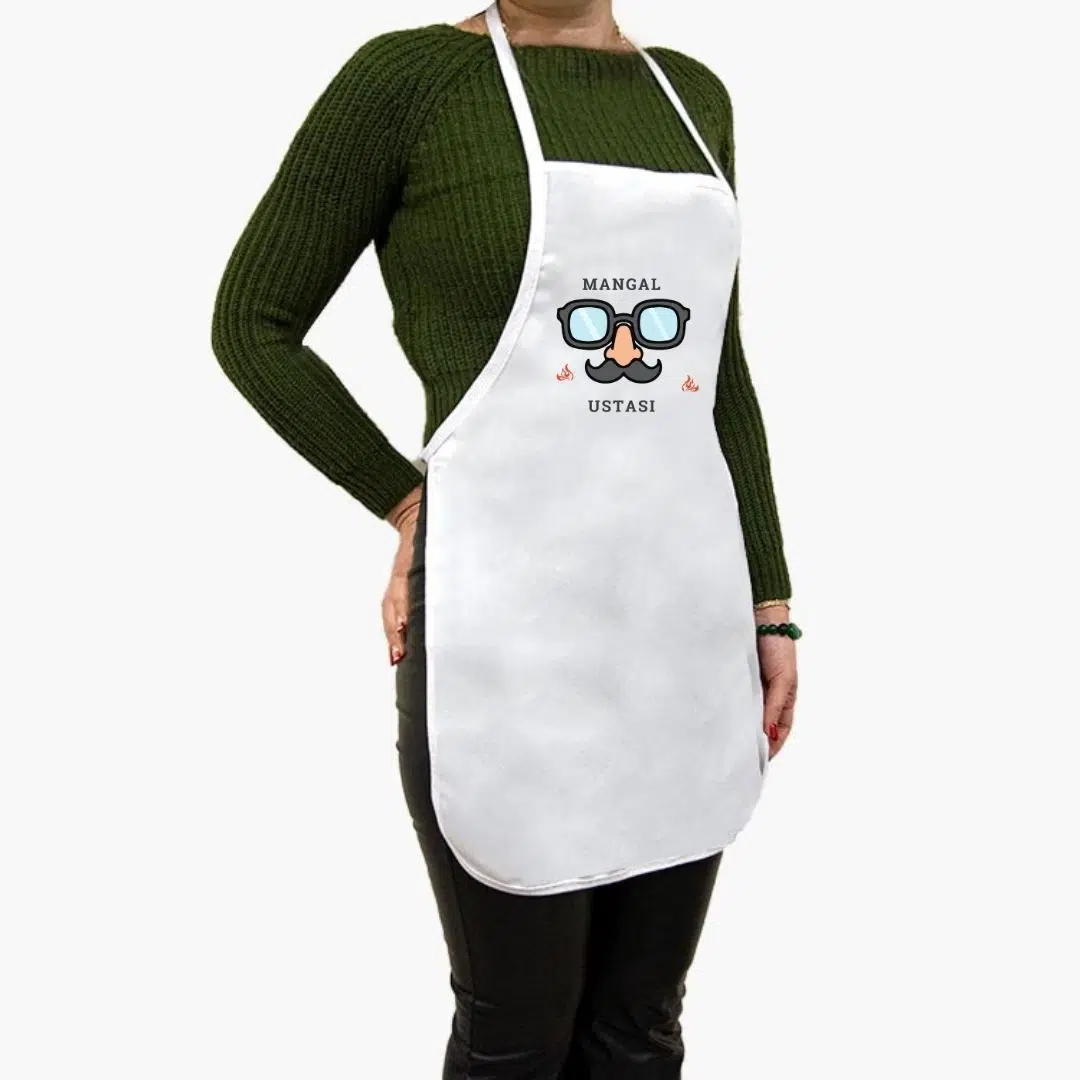 “Mangal Ustası” tasarımlı kişiye özel mutfak önlüğü, barbekü severler, mangal yapanlar ve mutfakta eğlenceli zaman geçirmeyi seven herkes için özel olarak hazırlanmıştır. Yüksek baskı kalitesi, dayanıklı kumaşı ve ayarlanabilir askıları sayesinde hem günlük kullanımda hem de hediye amaçlı sunumlarda mükemmel bir tercih sunar.