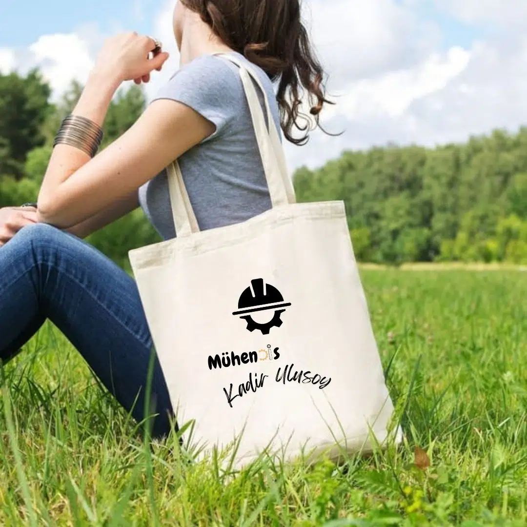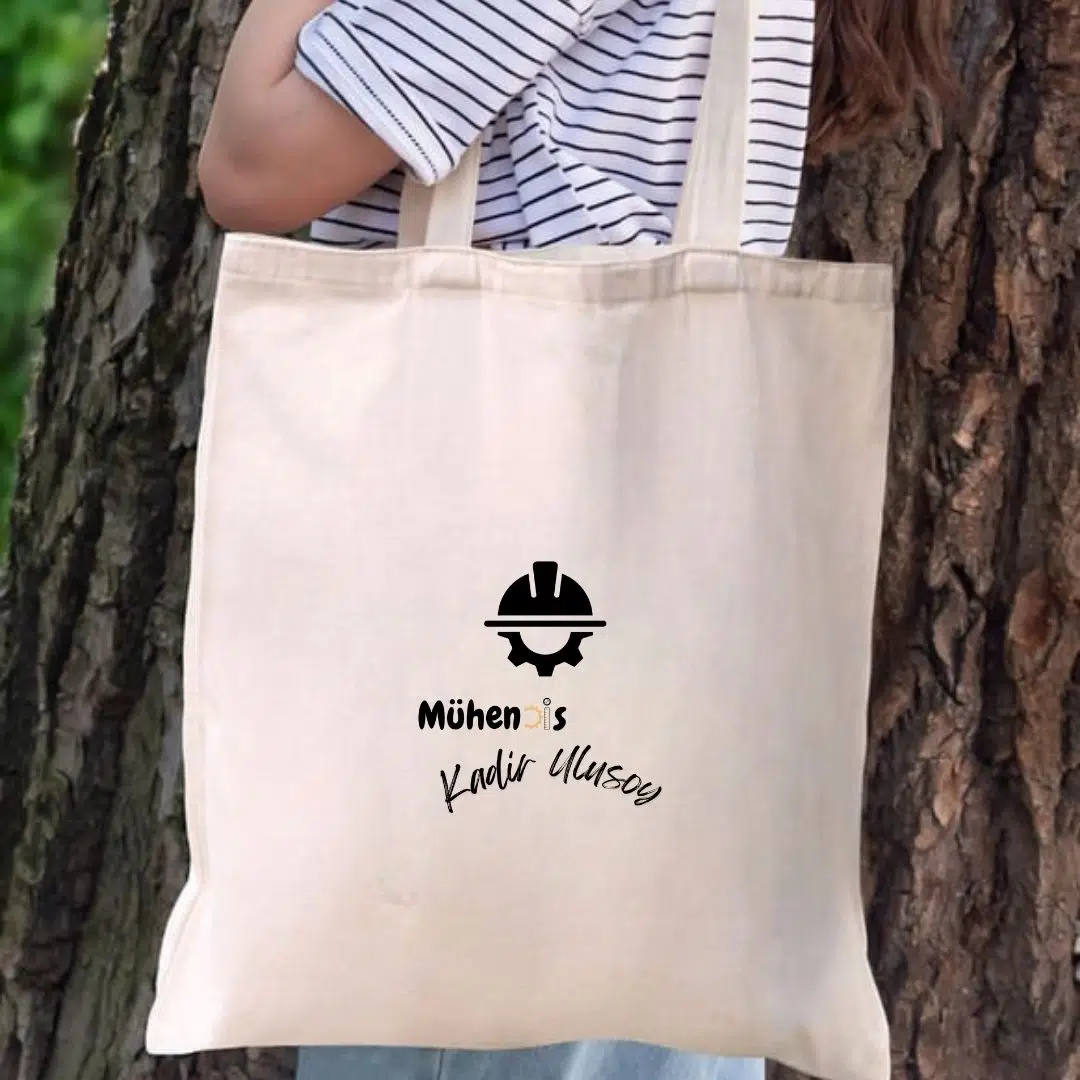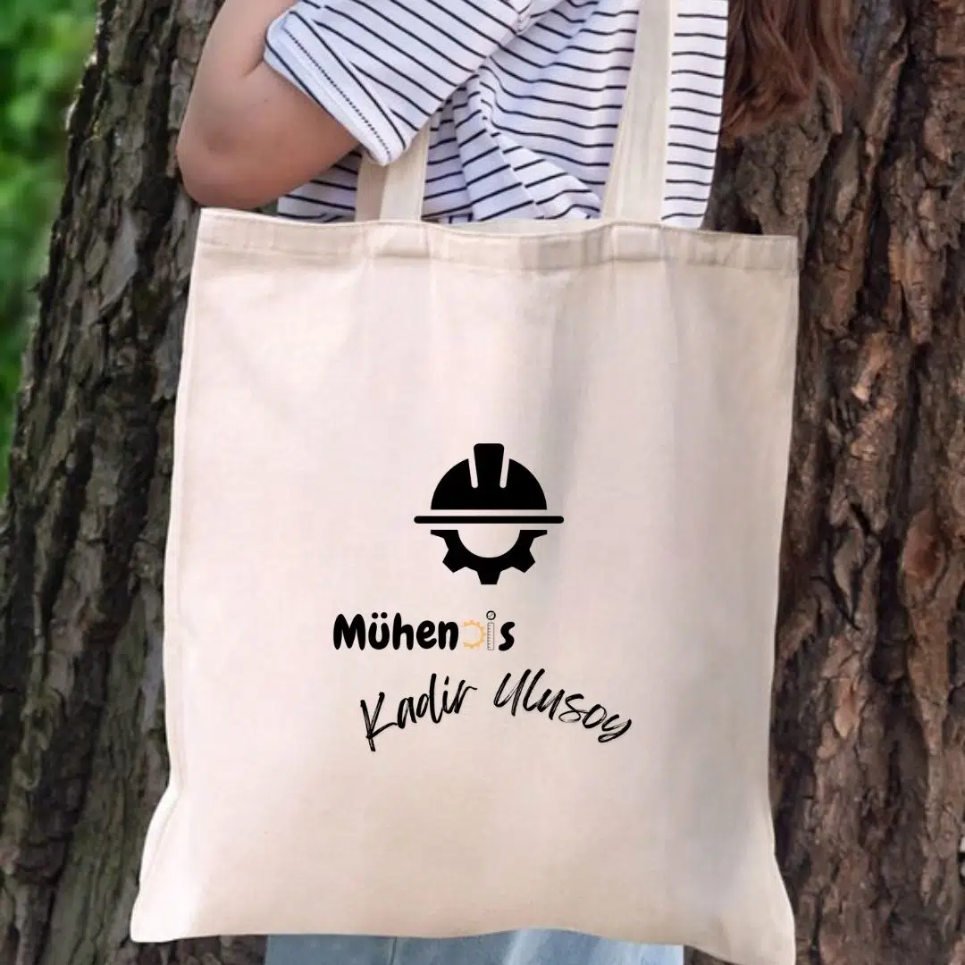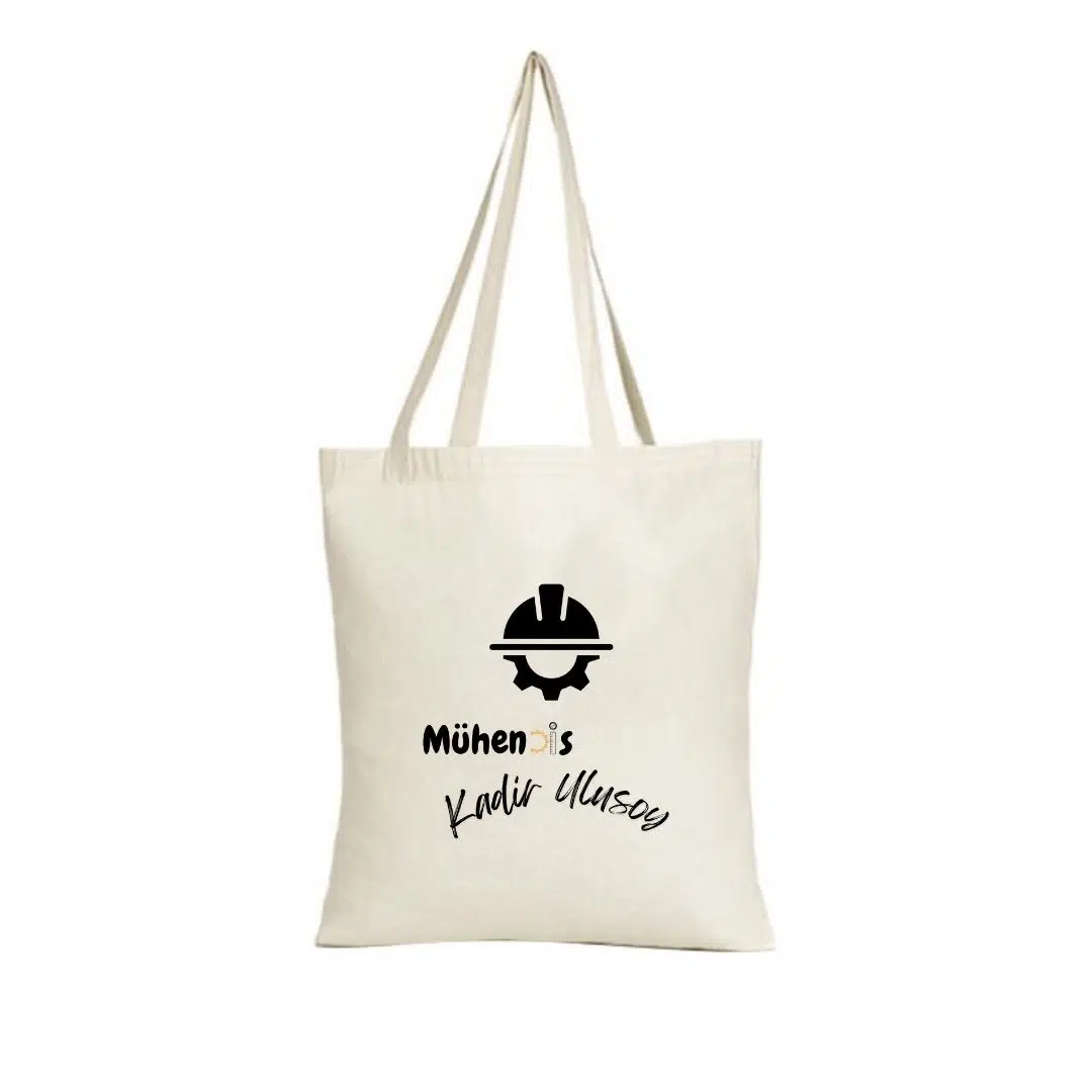 Kişiye Özel Mühendis Tasarımlı Bez Çanta – İsim Yazılabilir Hediyelik Omuz Çantası