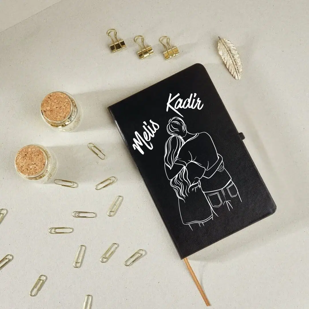 kişiye özel defter, isimli defter, sevgiliye hediye, sevgililer günü hediyesi, yıldönümü hediyesi, kişiselleştirilmiş defter, isim baskılı defter, deri kapaklı ajanda, romantik hediye, sevgili defteri, çiftlere özel hediye, özel baskılı defter