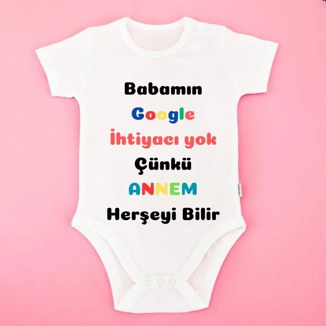 Komik Sözlü Anne Temalı Bebek Zıbını – “Babamın Google’a İhtiyacı Yok” Tasarım Body