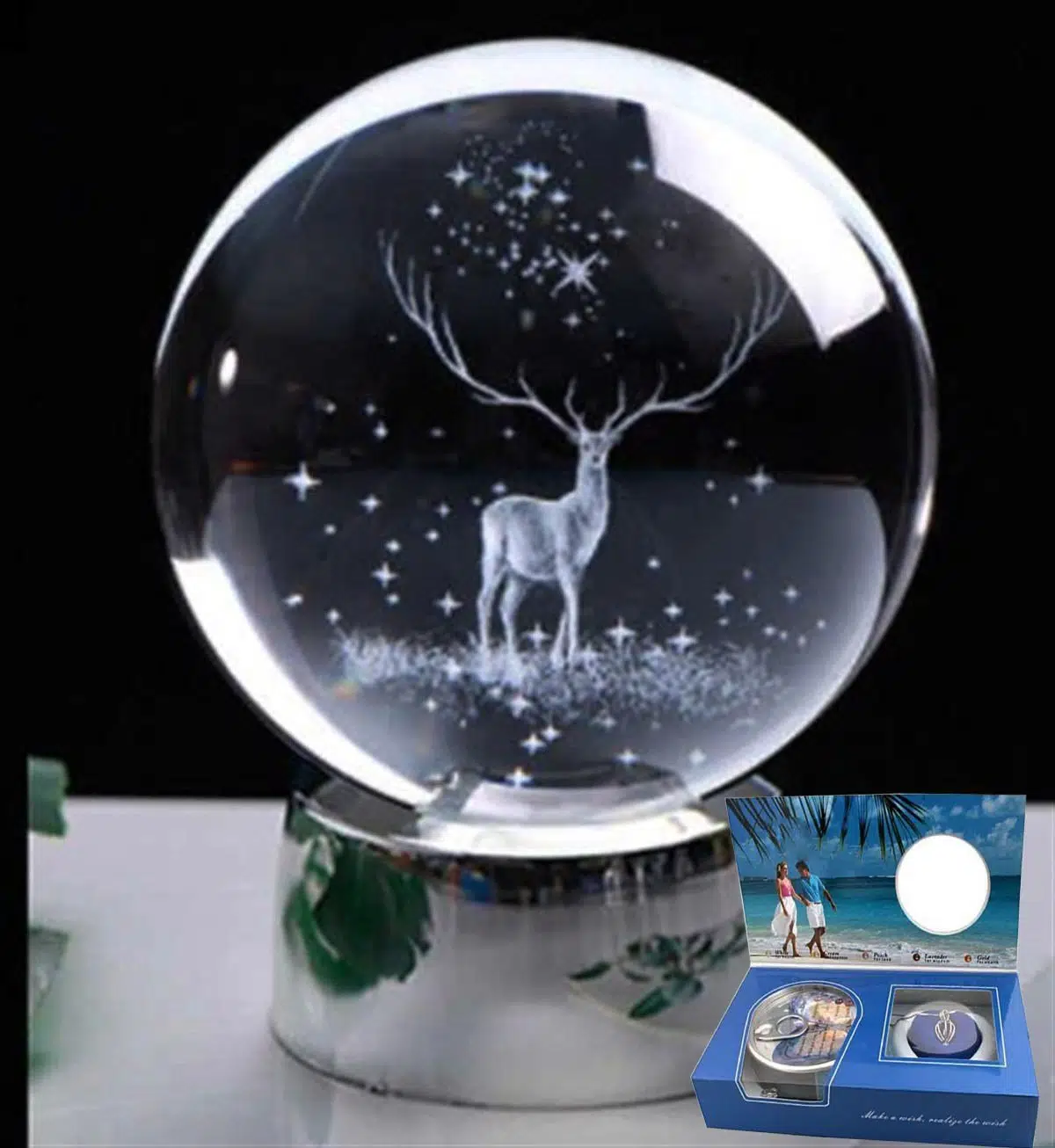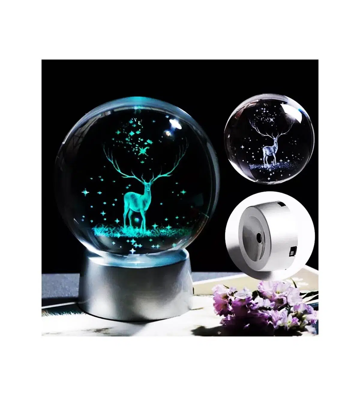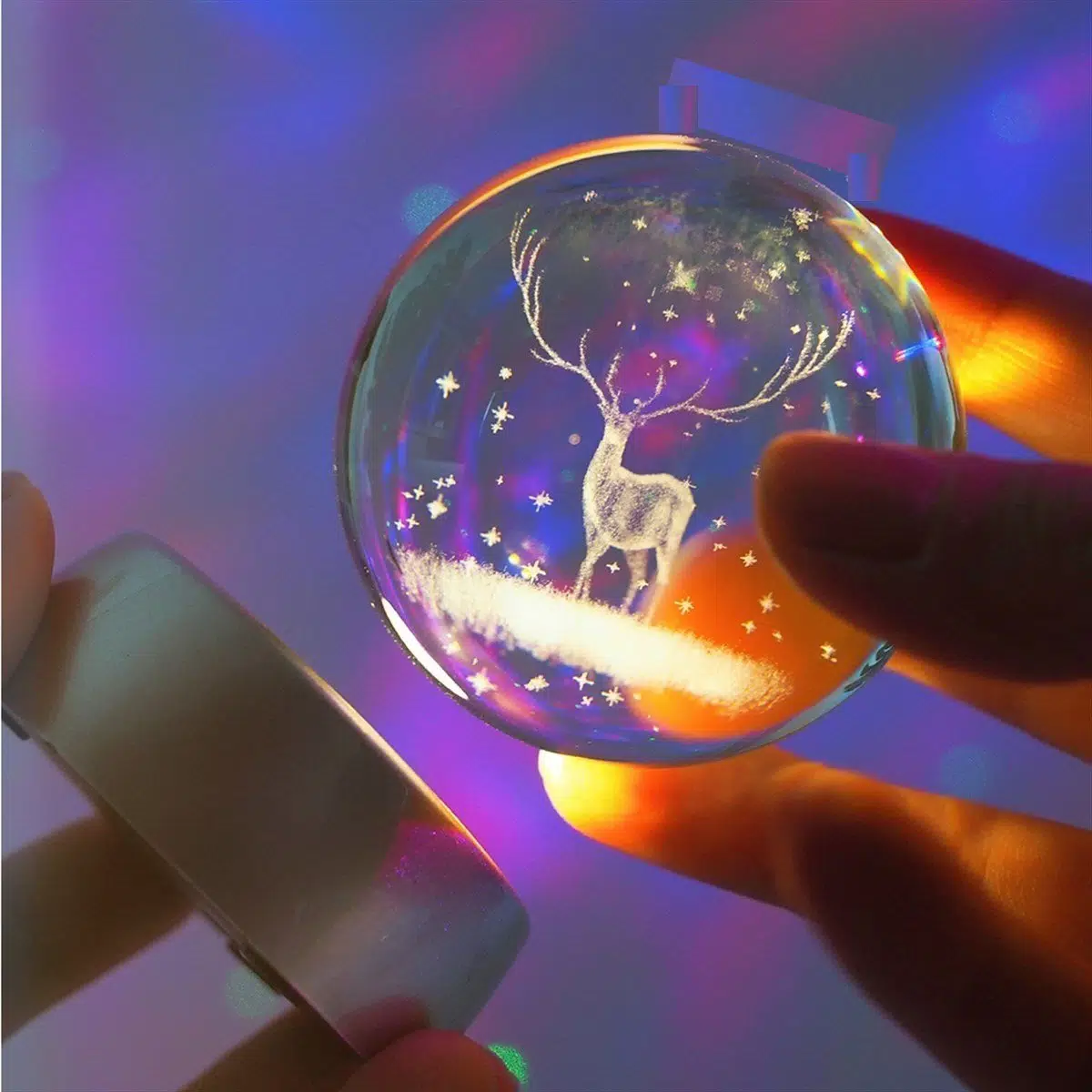 1 Adet Kristal Küre Geyik Led Gece Lambası