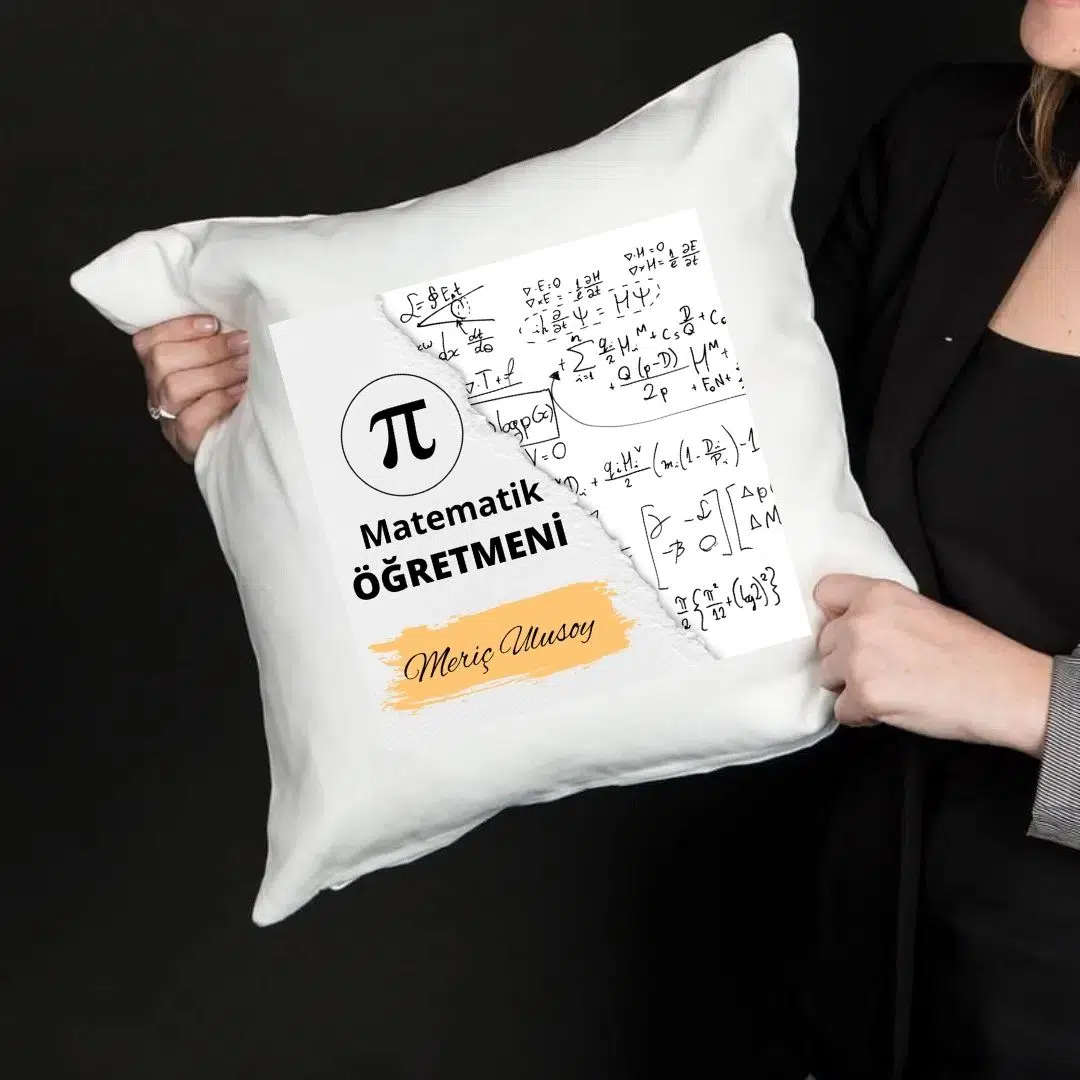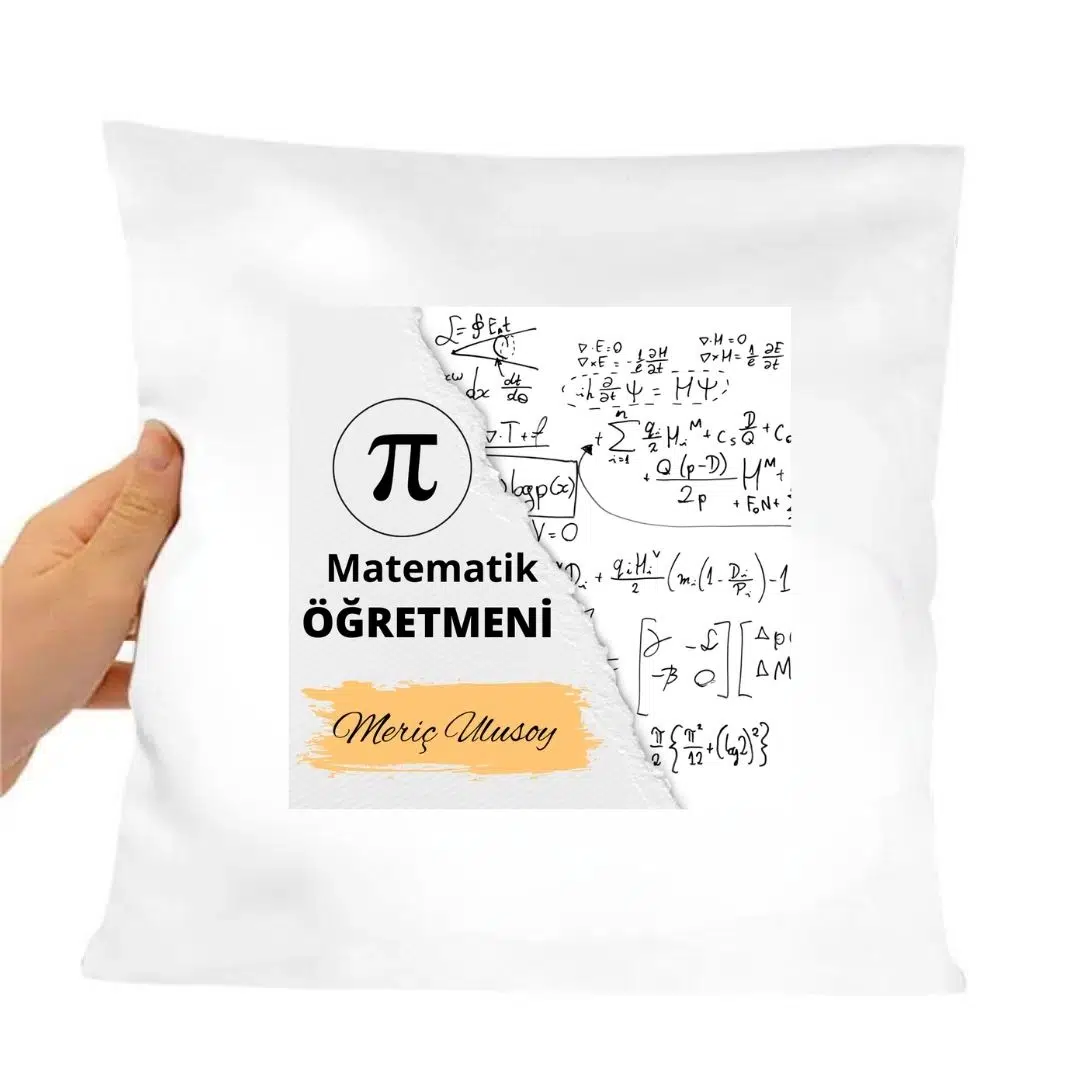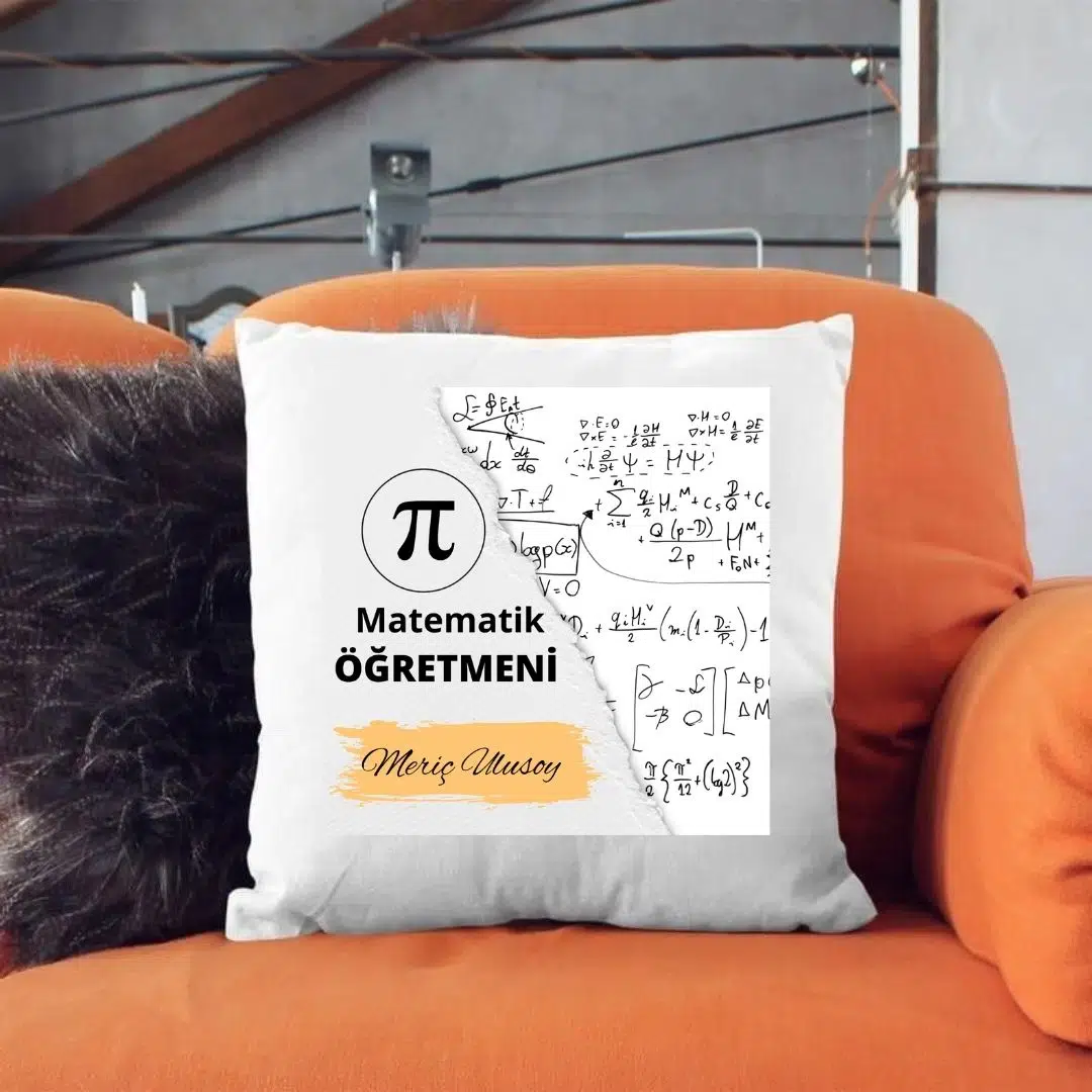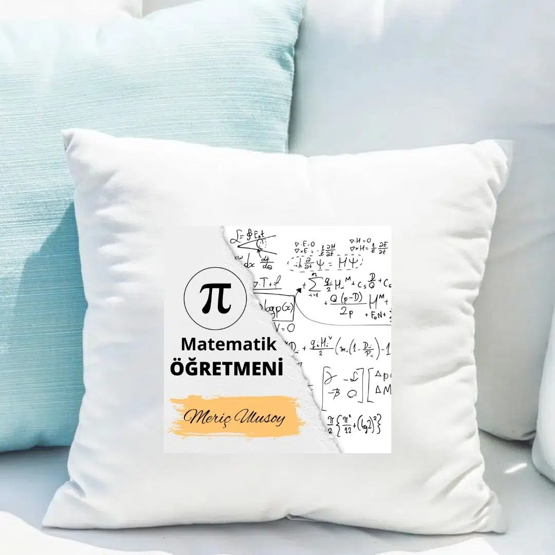 Matematik Öğretmenlerine Özel Saten Yastık Kılıfı 50x50 cm – İsme Özel Matematik Temalı Dekoratif Kırlent Kılıfı (İçi Boş)