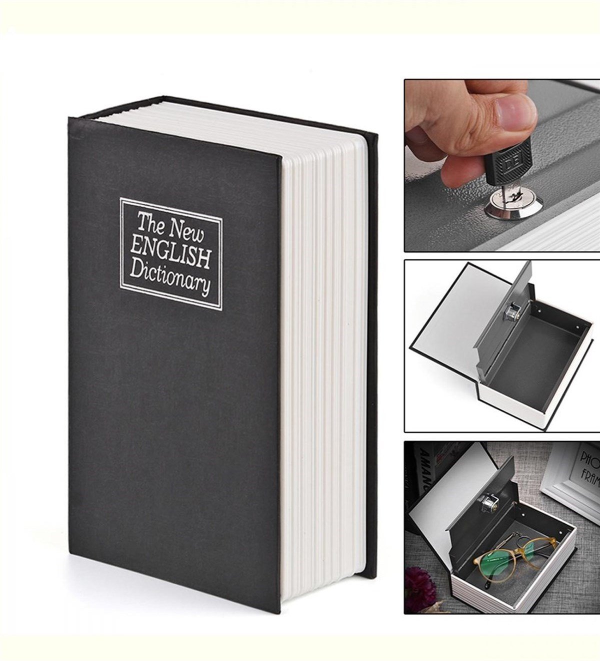 "Kitap en iyi dosttur." Kıymetli eşyalarınızı da artık en değerli dostunuza emanet edebilirsiniz. Kitaplığınızda İngilizce sözlük taklidi yaparak dikkat çekmeden duran bu kitap aslında gizli bir kasa!
