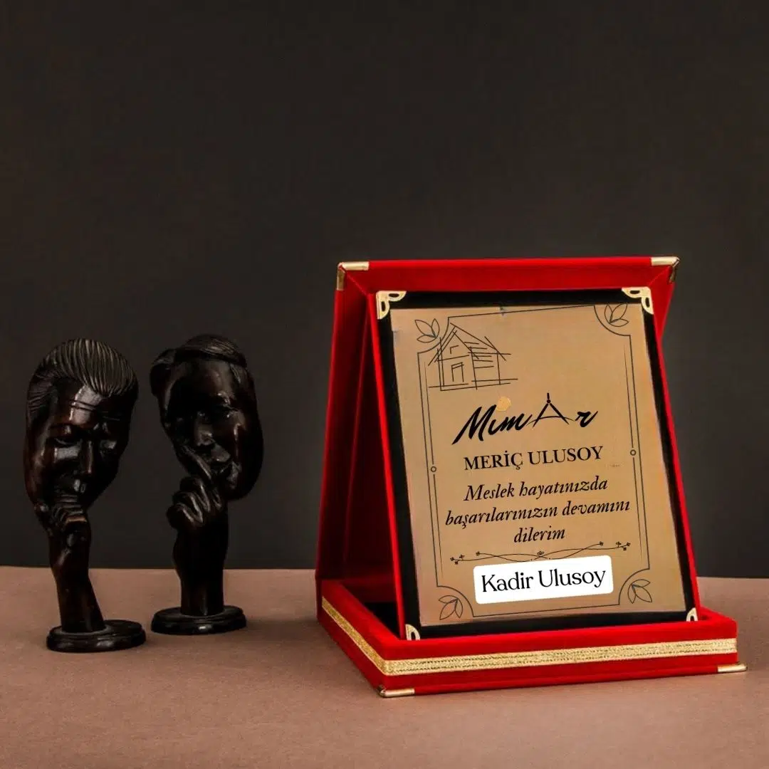 Bir mimara en özel ve kalıcı hediyeyi mi arıyorsunuz? Mimarlık mesleğinin inceliğini ve yaratıcılığını yansıtan bu kişiye özel plaket ile meslek hayatının en önemli anlarını onurlandırın. İster ofis açılışı, ister terfi ya da mezuniyet gibi özel bir gün olsun, bu plaket her zaman hatırlanacak anlamlı bir armağan olacaktır.