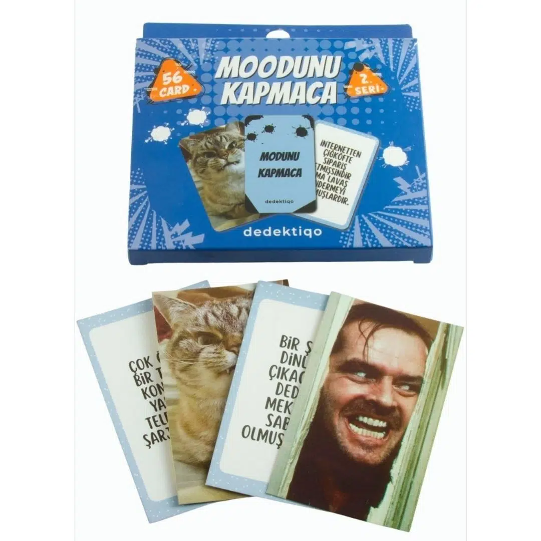 Moodunu Kapmaca Kutu Oyunu, arkadaşlarınızla ve ailenizle keyifli vakit geçirmenizi sağlayan eğlenceli ve interaktif bir sohbet oyunudur. Kartlar üzerinde yer alan sorular ve tahminler sayesinde hem kahkaha dolu anlar yaşanır hem de oyuncular birbirlerini daha yakından tanıma fırsatı bulur.