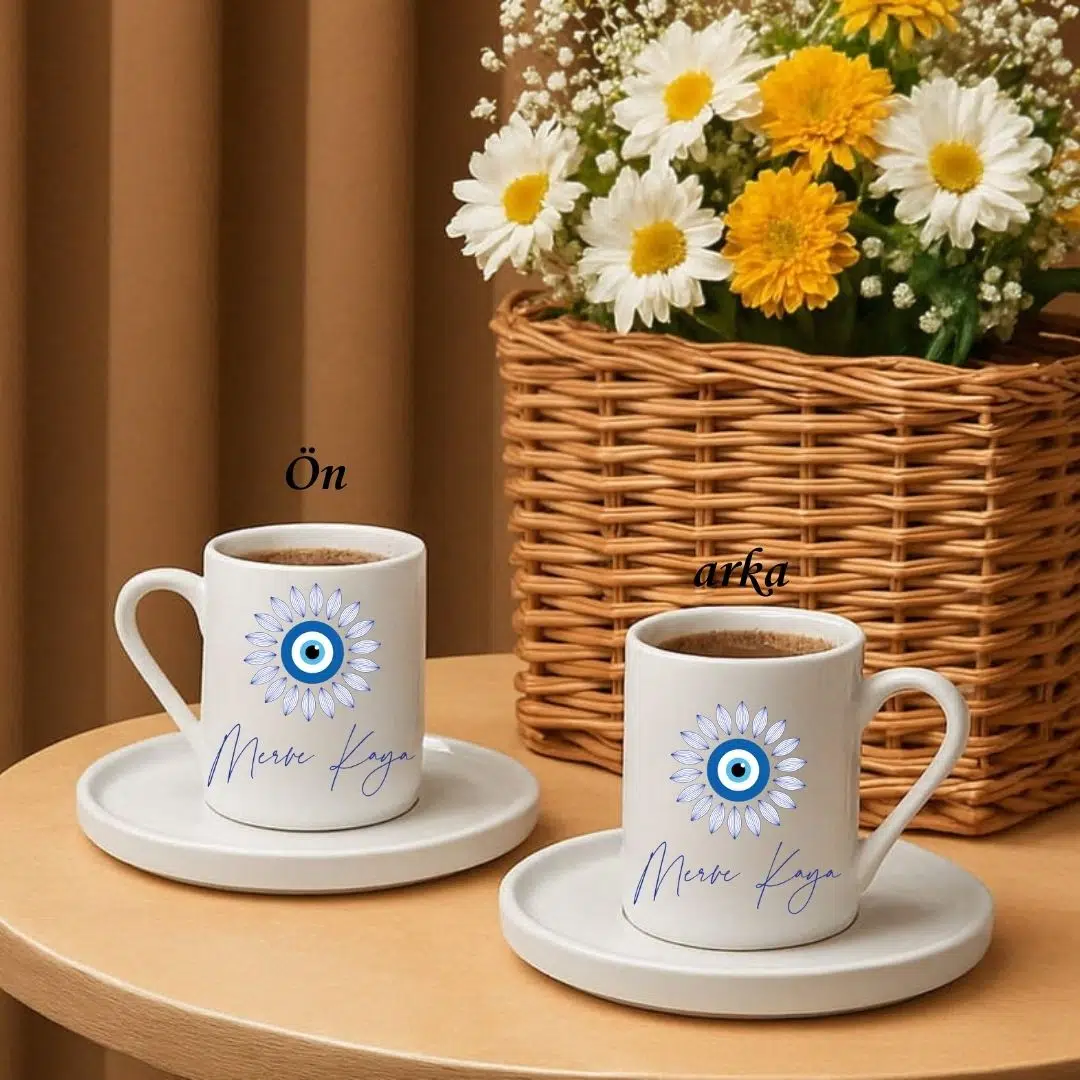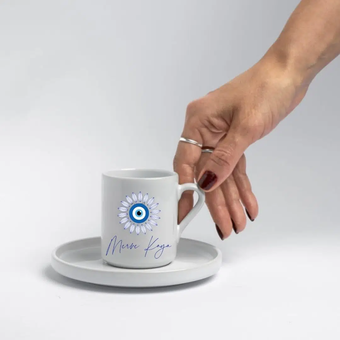 Nazar Boncuklu Kişiye Özel Türk Kahvesi Fincanı – İsim Yazılı Hediyelik