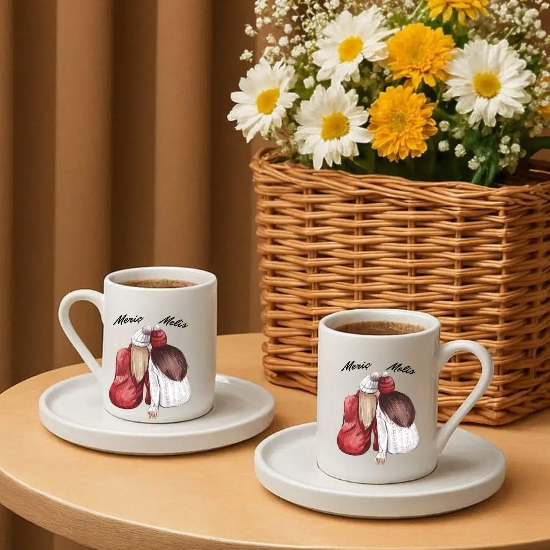 Kişiye Özel İkili Arkadaş Temalı Türk Kahvesi Fincan Seti – Hediyelik