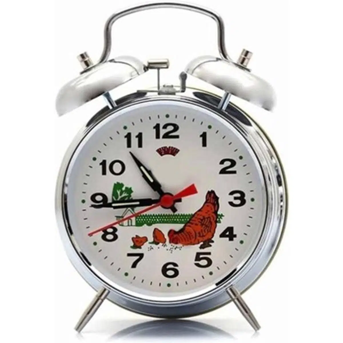 Nostaljik Kurmalı Tavuklu Çalar Metal Masa Saati 80'leri, 90'ları yaşayanlar çok net hatırlayacaktır. İki civciviyle beraber yem yiyen tavuklu saat o günlerin vazgeçilmez figürlerindendi. Hangimiz o tavuğu ve civcivleri oradan çıkartıp oyun oymayı hayal etmedik ki.Güçlü çalar saati ile uyanma garantili, kurmalı olduğu için pil vs istemeyen retro ürünler arasında belki de en unutulmaz olan Tavuklu Çalar Saat