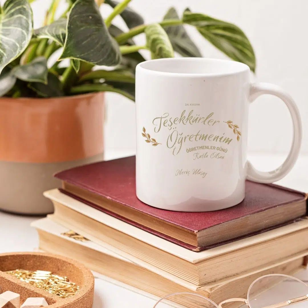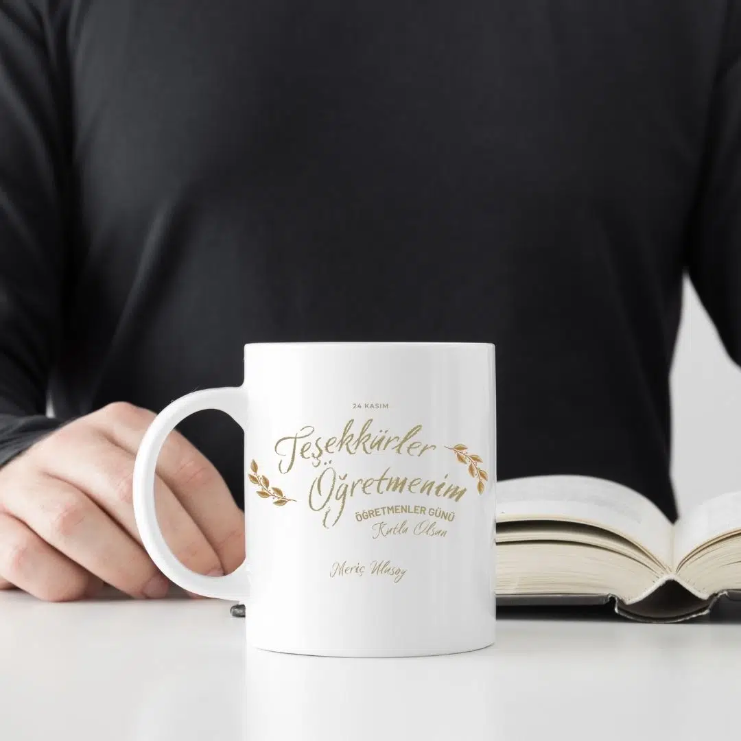 Kupa üzerine öğretmen ismi ve isteğe bağlı olarak branş veya okul adı eklenebilir; böylece tamamen kişiye özel, unutulmaz bir hediye ortaya çıkar.