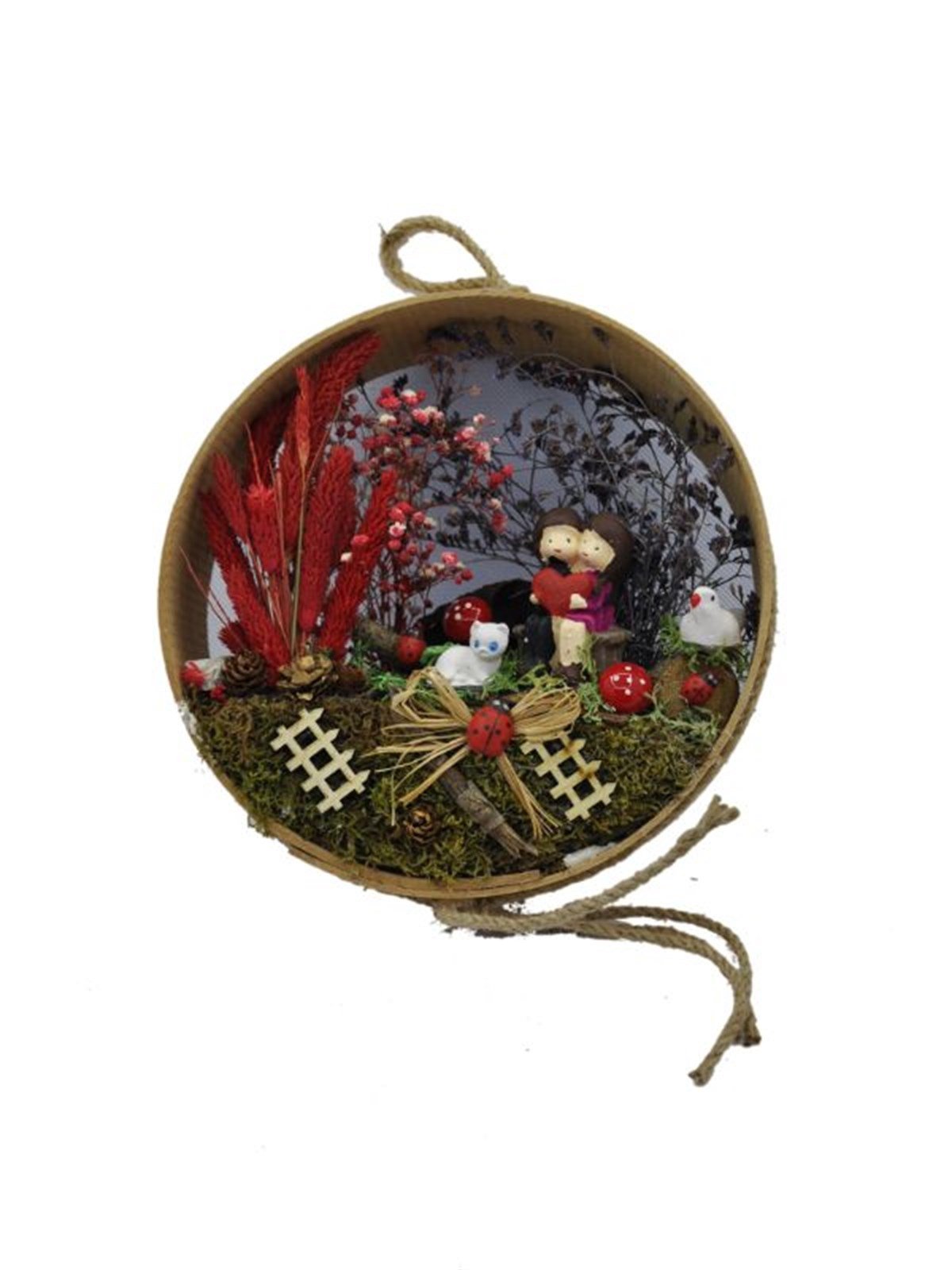 çit,gelincik,mantar figürleri kozalak,şoklanmış yosun,taş,ağaç kabukları,kurutulmuş bitkiler ve jut ip kullanılmıştır.Bereket sembolü elek içerisinde tasarlanmış ürünümüz,ev-ofis ortamı için ideal olup,bakım gerektirmez