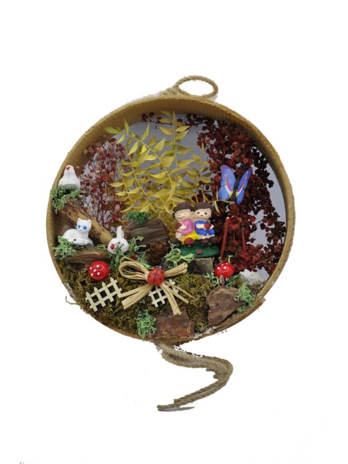 çit,gelincik,mantar figürleri kozalak,şoklanmış yosun,taş,ağaç kabukları,kurutulmuş bitkiler ve jut ip kullanılmıştır.Bereket sembolü elek içerisinde tasarlanmış ürünümüz,ev-ofis ortamı için ideal olup,bakım gerektirmez