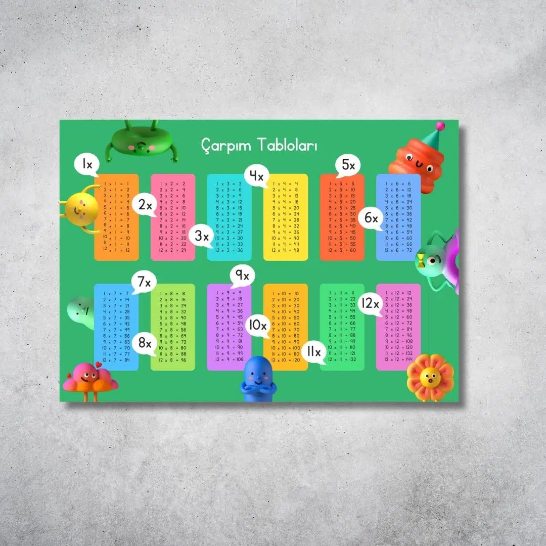 Bu eğitici ve şık çarpım tablosu posteri ile çocuklar hem eğlenecek hem de çarpım işlemlerini kolayca öğrenecek!