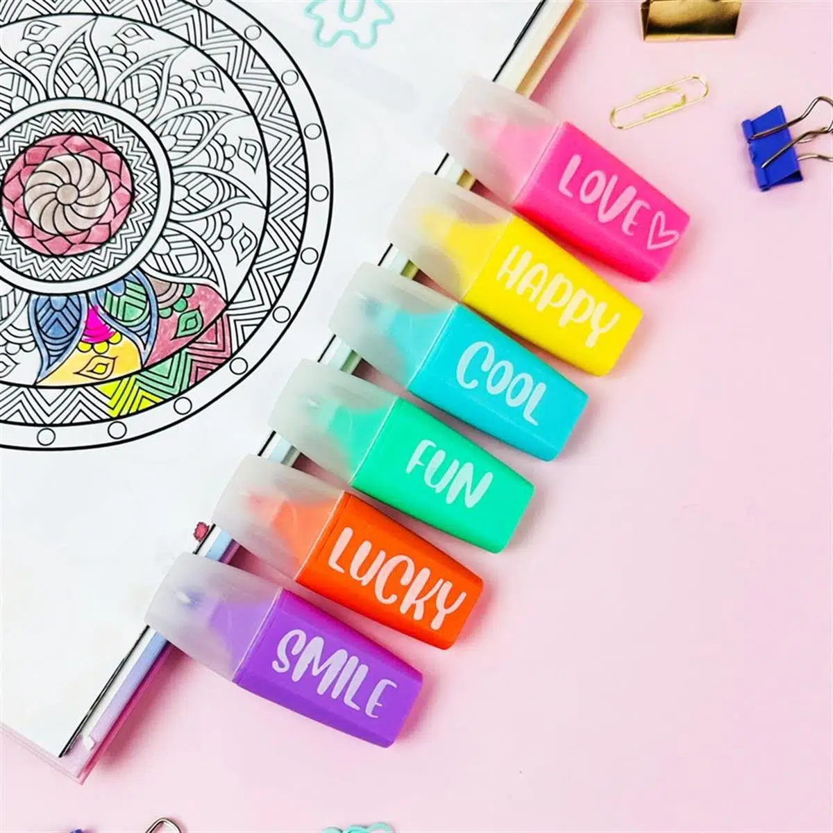 6 adet fosforlu keçeli motto kalem