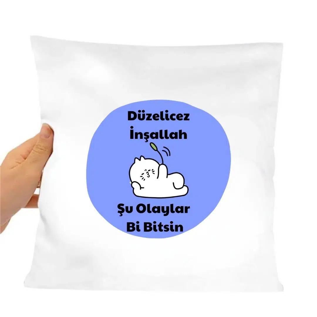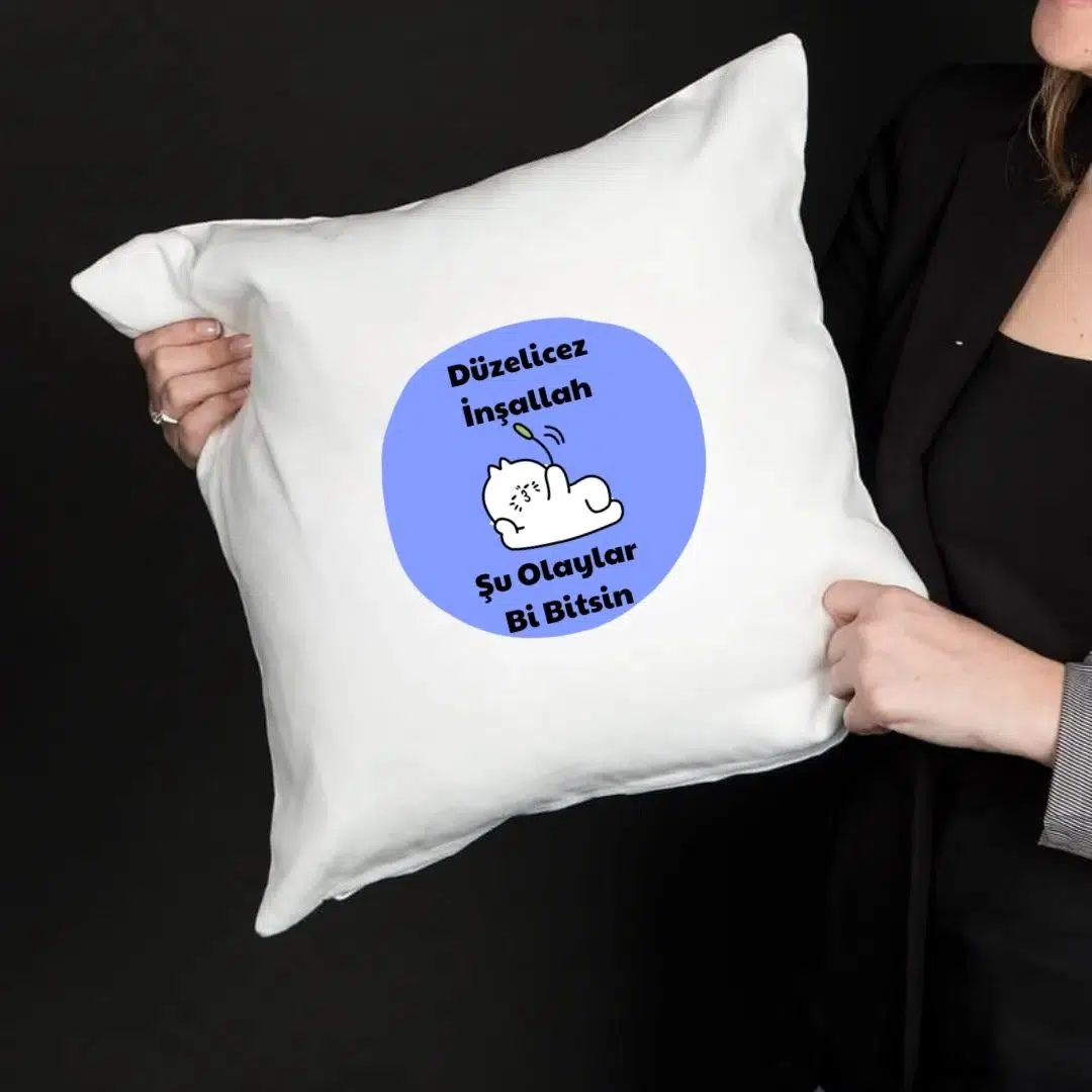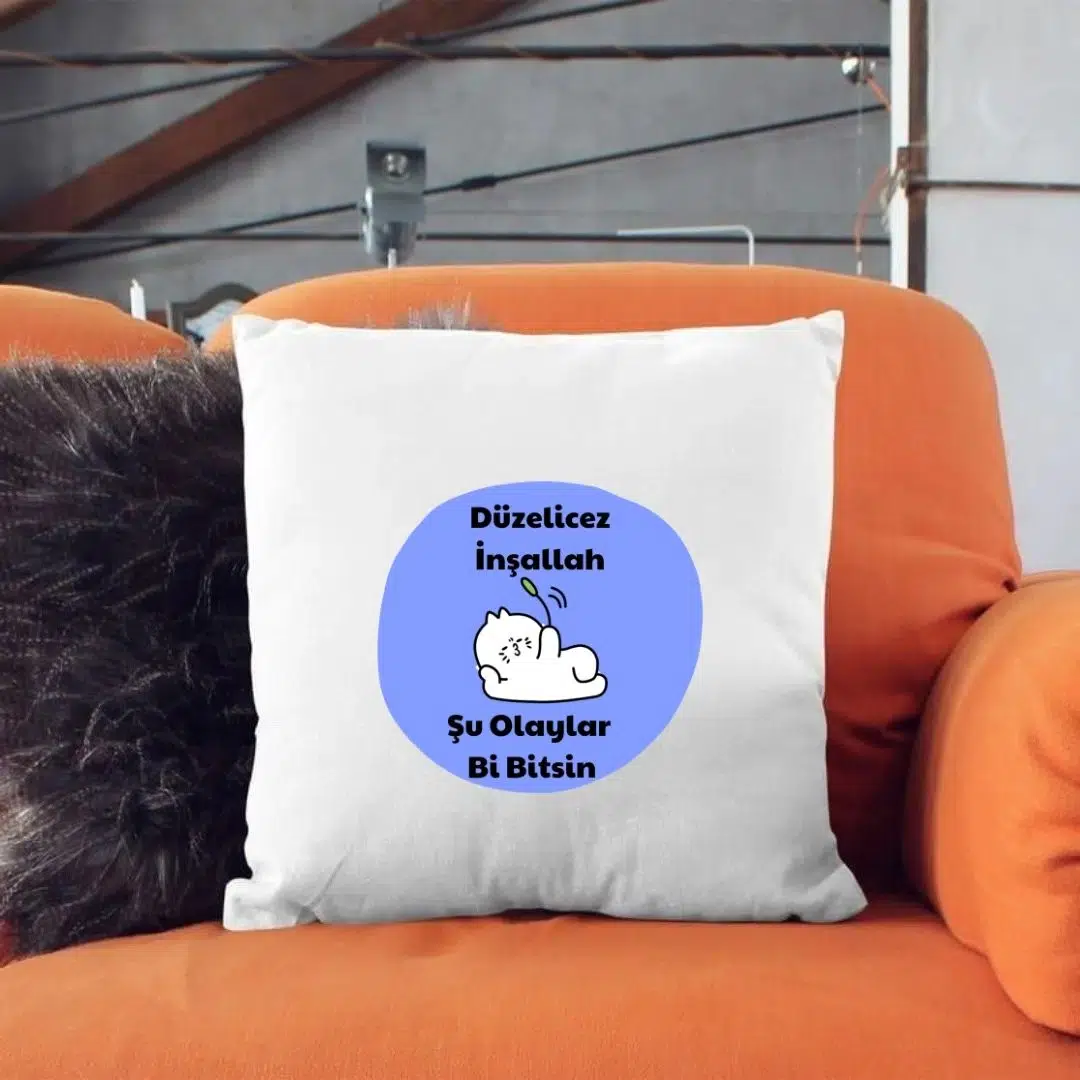 Saten Yastık Kılıfı 50x50 cm – “Düzelicez İnşallah” Baskılı Dekoratif Kırlent Kılıfı (İçi Boş)