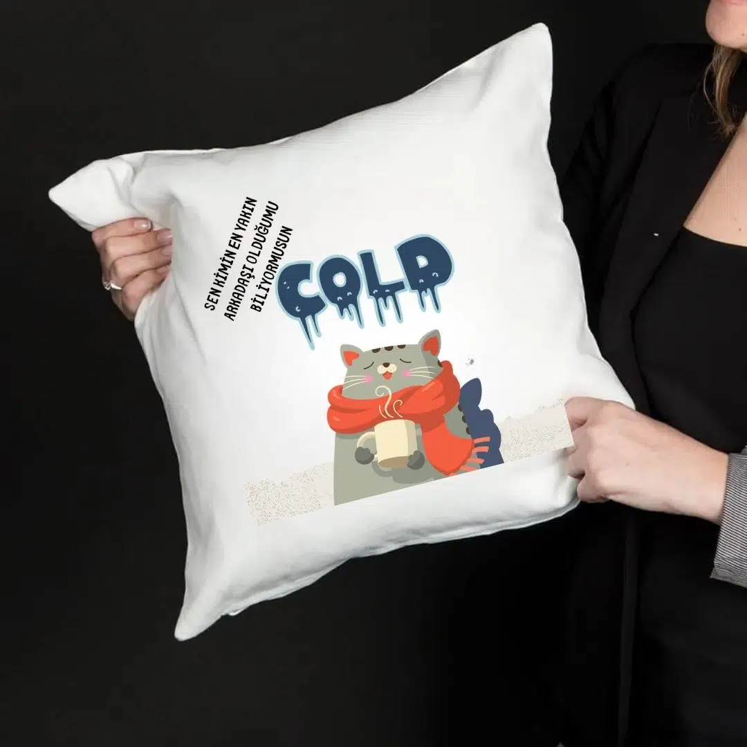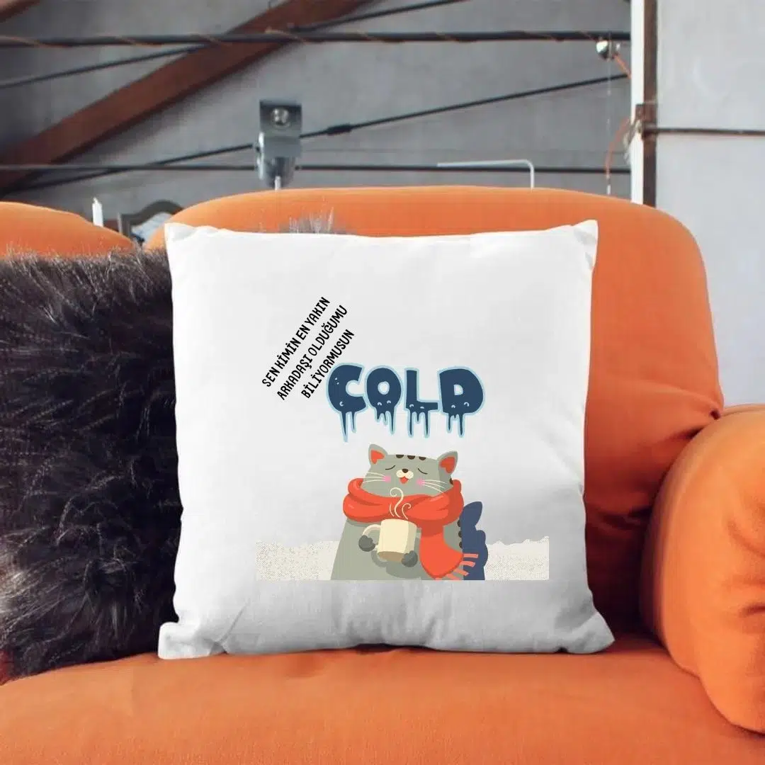 Saten Yastık Kılıfı 50x50 cm – “Sen Kimin Hırkını Arkadaşı Olduğumu Bilmiyor musun COLD” Baskılı Dekoratif Kırlent Kılıfı (İçi Boş)