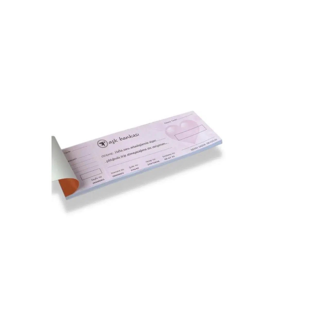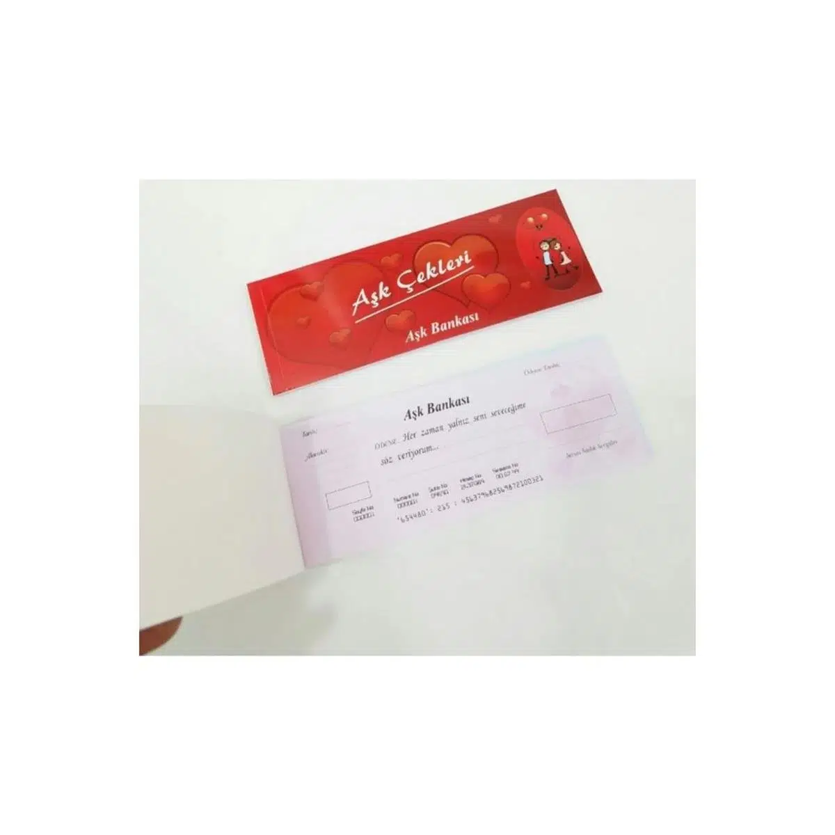 Aşk meleği Erosun okundan çıkan Eros bank güvencesiyle sevgilinize vereceğiniz bu güzel çek defteri, aynı gerçek bir çek defteri gibi; hesap no su, şube kodu, ve aşk kokan pembe renkli kalp damgası taşıyor. Sevgilinize ticari alanda değilse de gönül bağı ve aşk adına garanti edebileceğiniz birçok güzel vaadi içerecek olan bu çek defteriyle ona romantik duygular yaşatabilirsiniz. Sevgiliye yıldönümü hediyeleriaradığınız zaman arda ilginç ve gönül alıcı bir hediye.